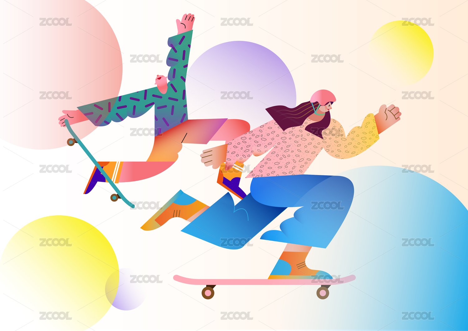 穿滑輪鞋的年輕男女|青春活力戶外運(yùn)動人物素材