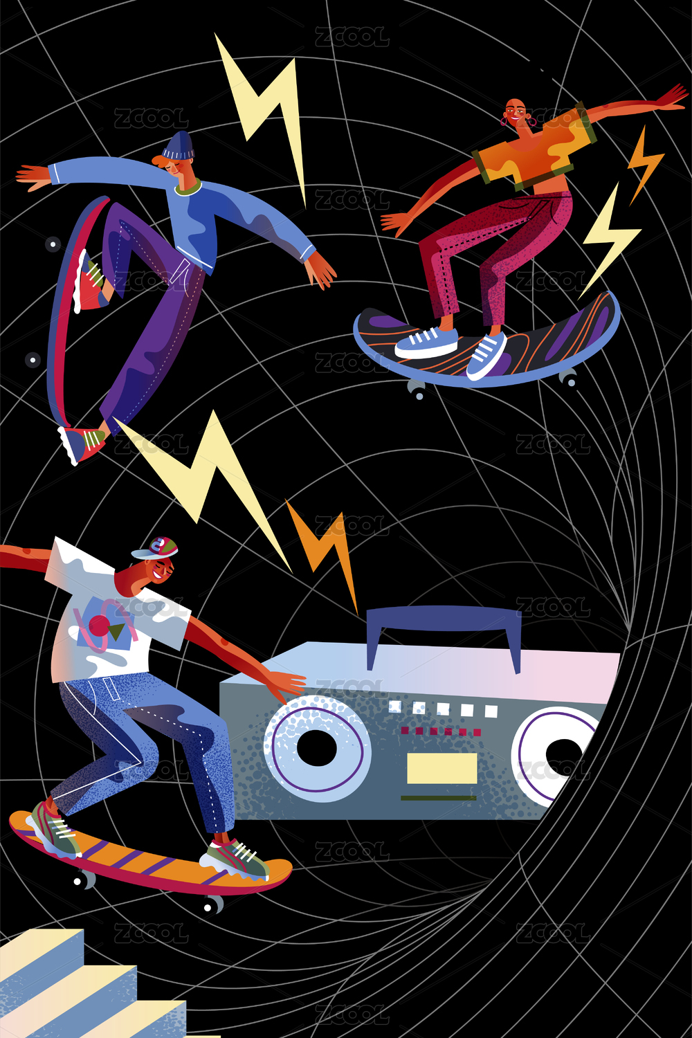 涂鴉噴罐街頭風(fēng)美式潮流插畫