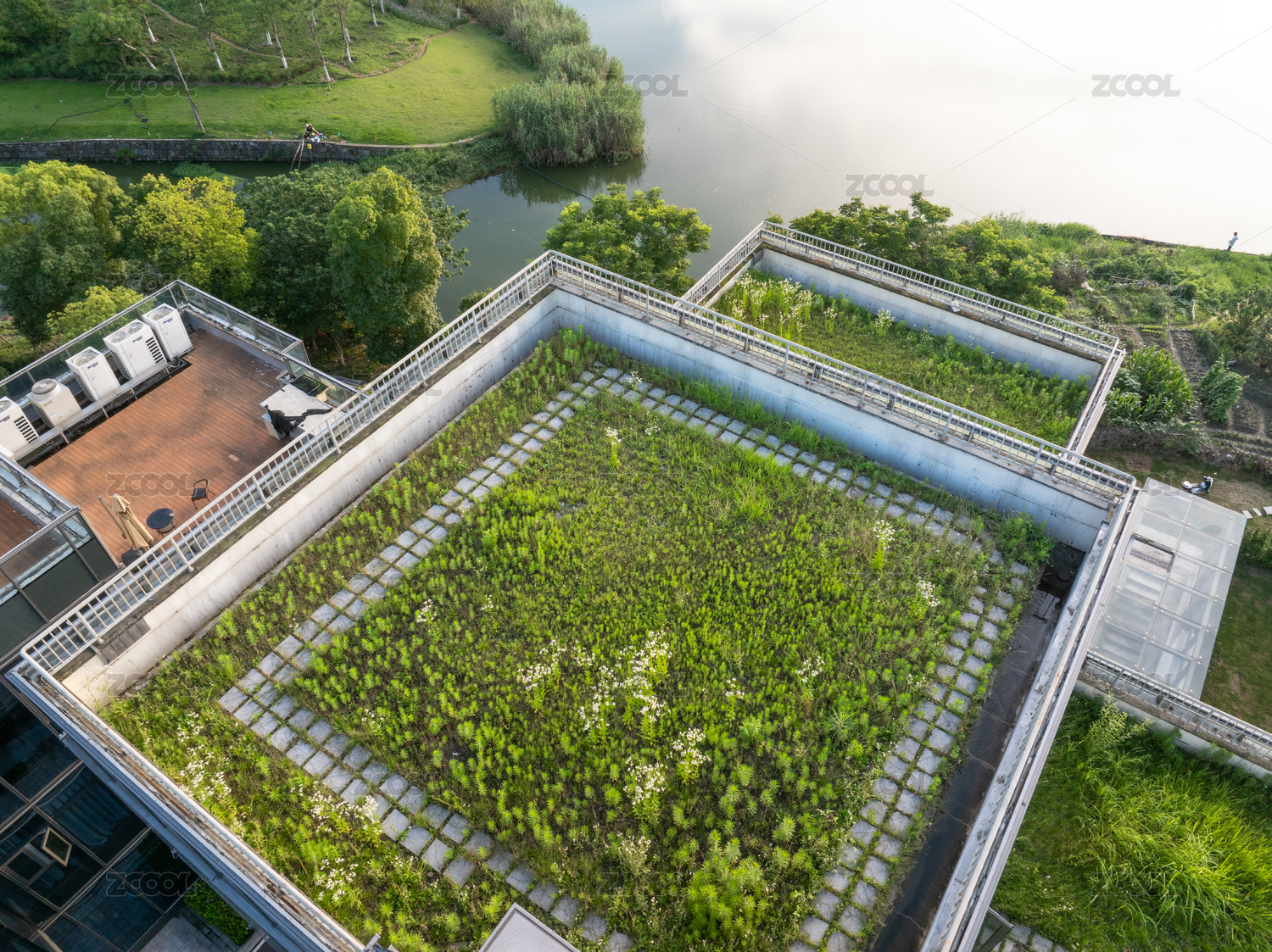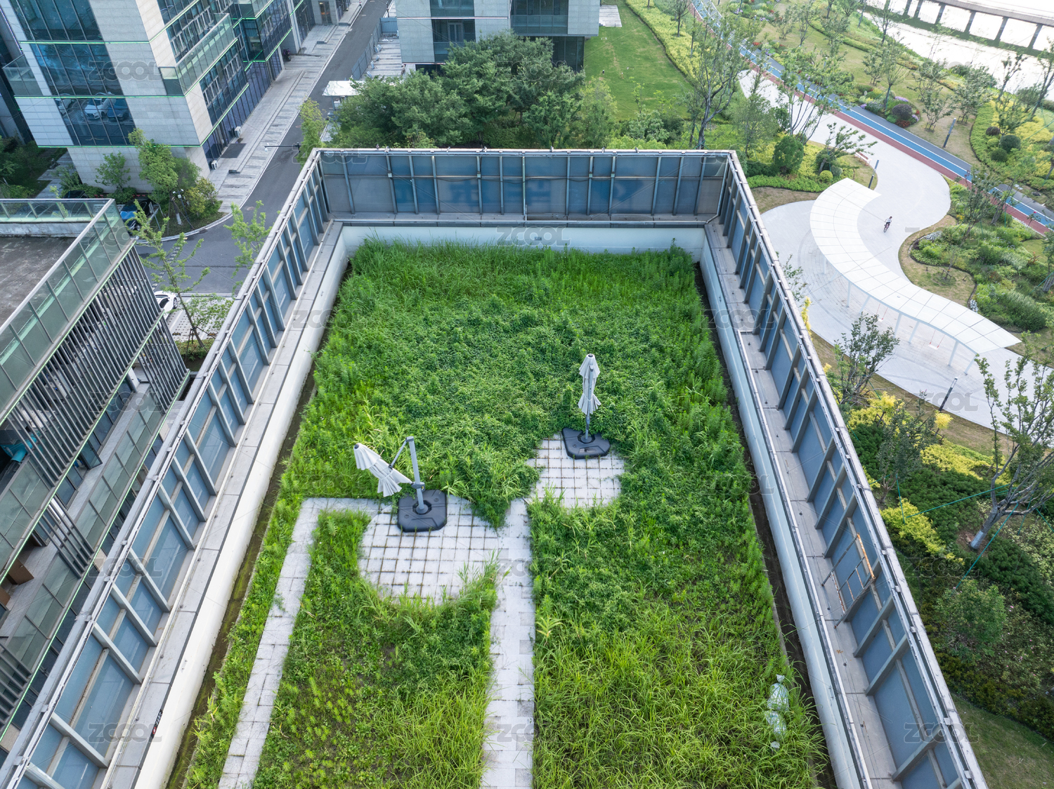 俯瞰辦公大樓屋頂?shù)墓珗@露臺(tái)