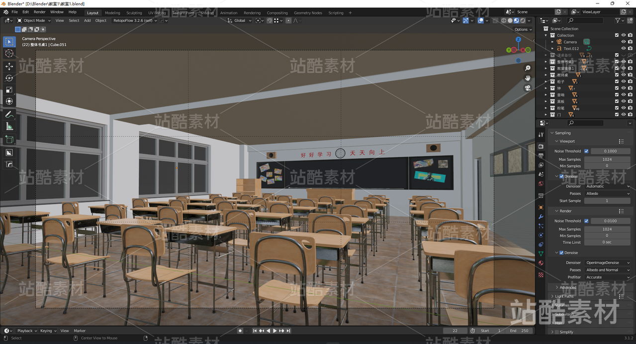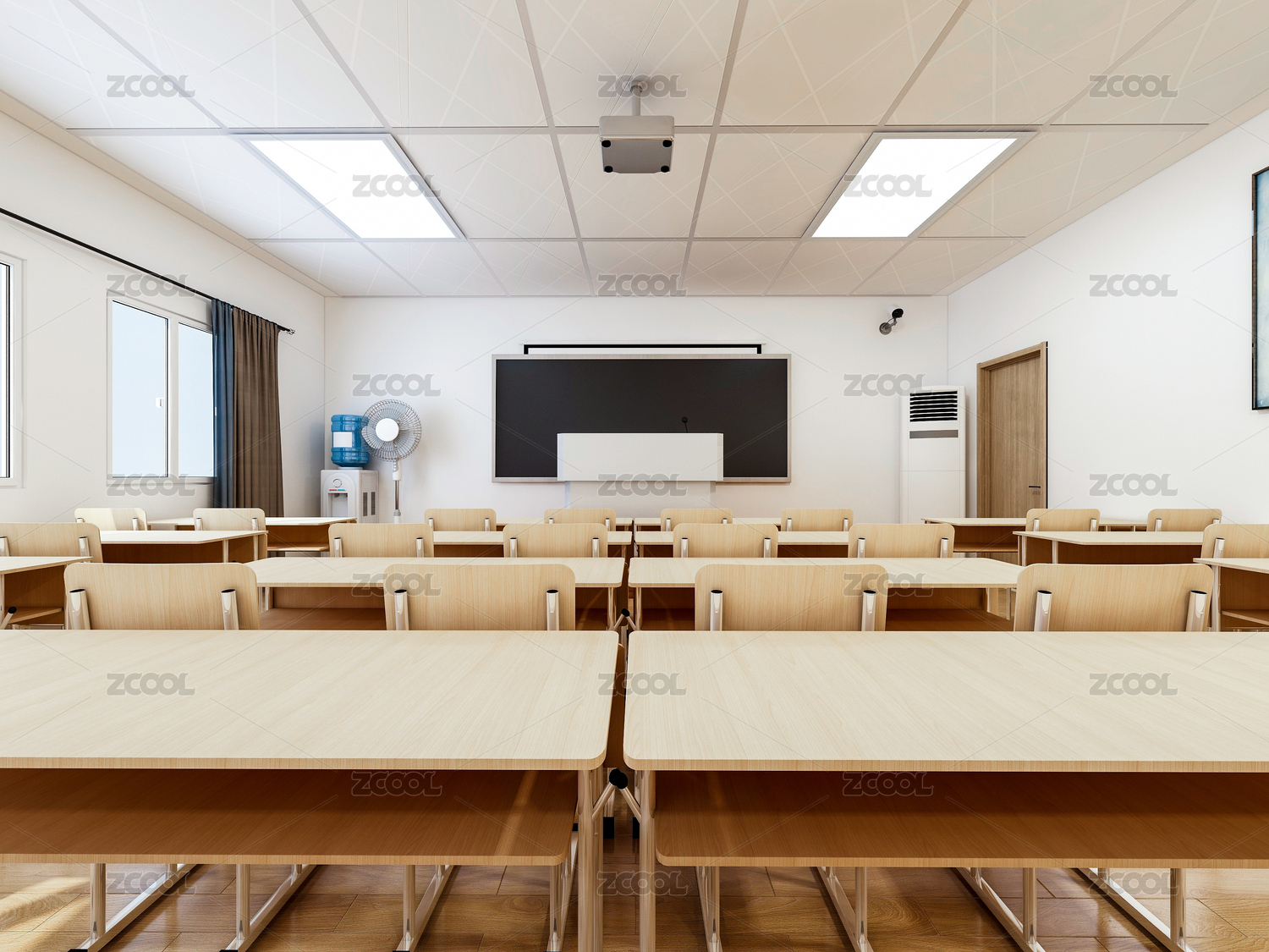 室內(nèi)設(shè)計3D渲染,干凈明亮的現(xiàn)代化教室