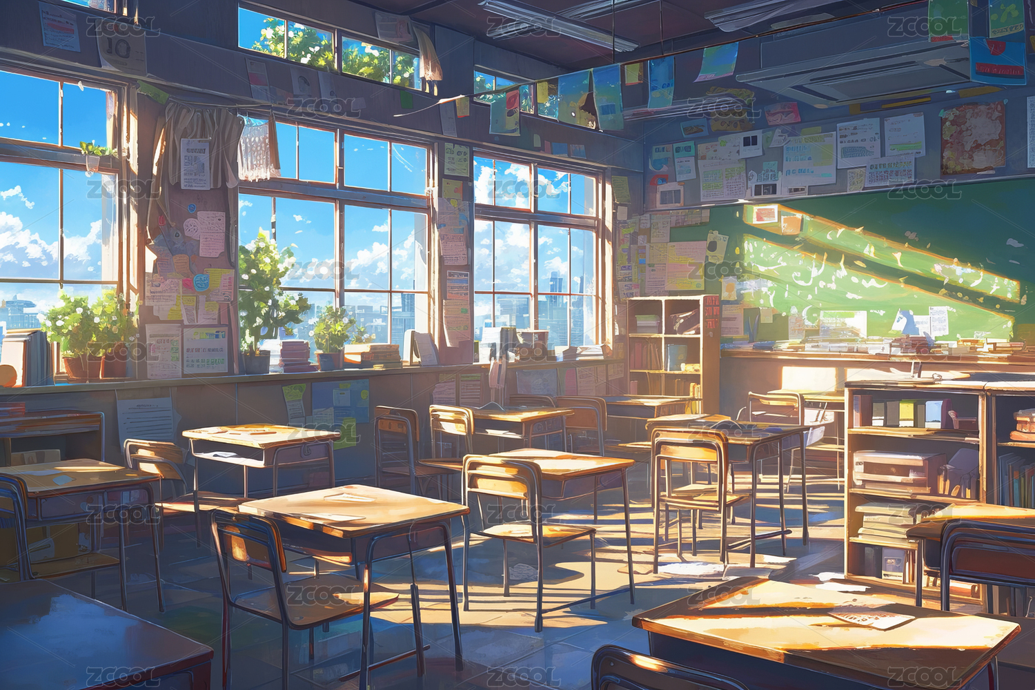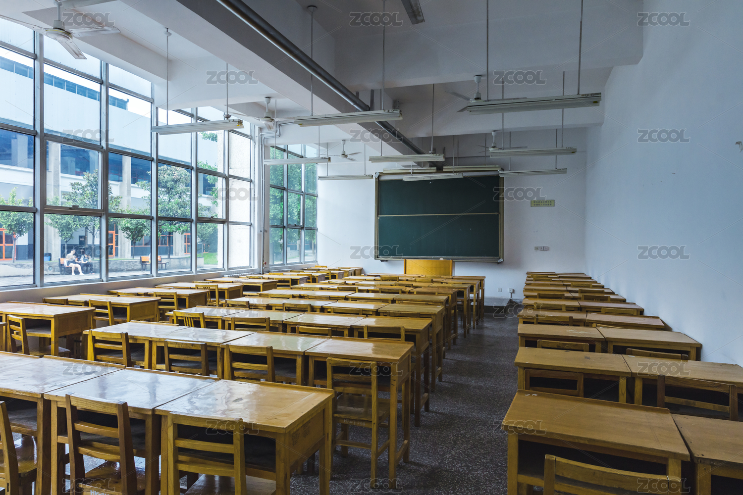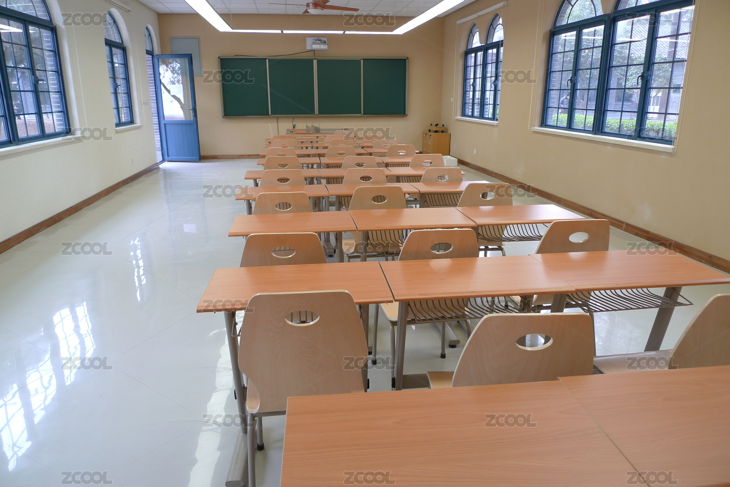 教室或?qū)W??諘绲慕淌遗溆兄袑W(xué)學(xué)習(xí)課桌椅