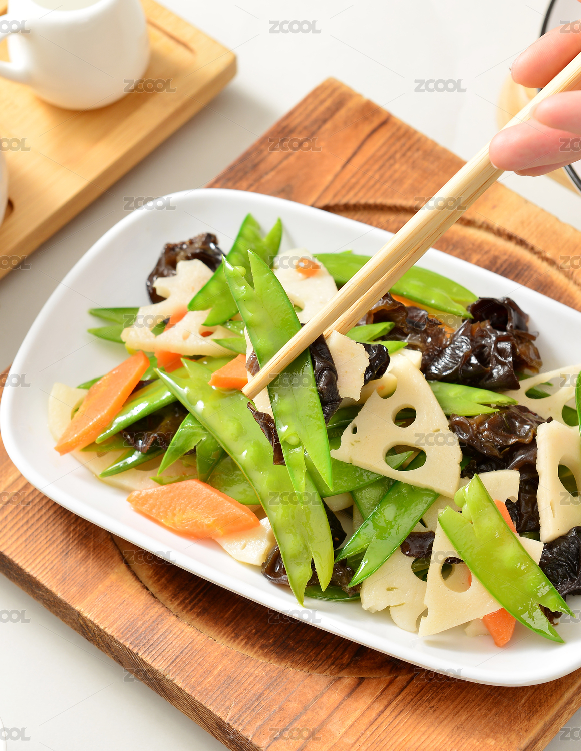 中式炒菜大盤雞蔬菜和饅頭花卷 手繪插畫