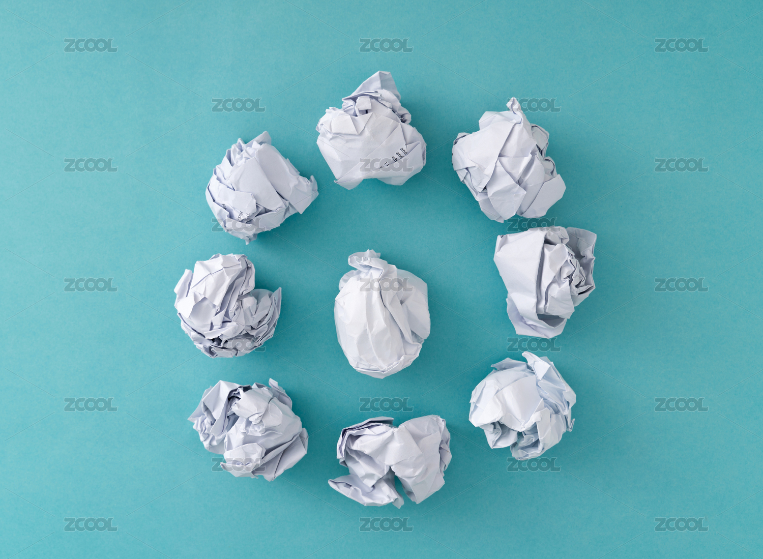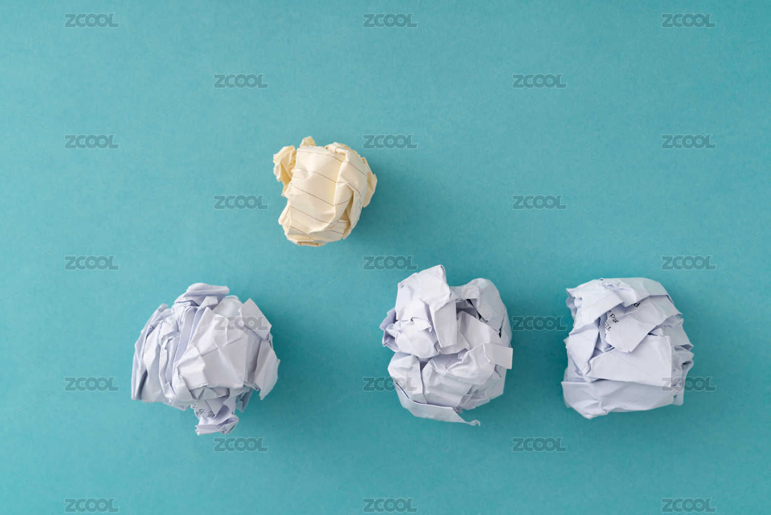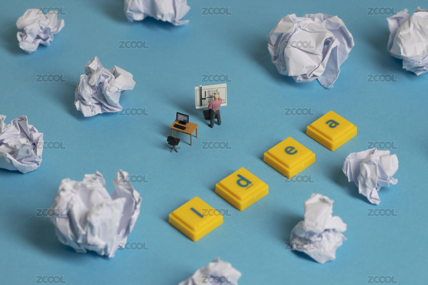 藍(lán)色卡紙上的紙團(tuán)和設(shè)計(jì)師