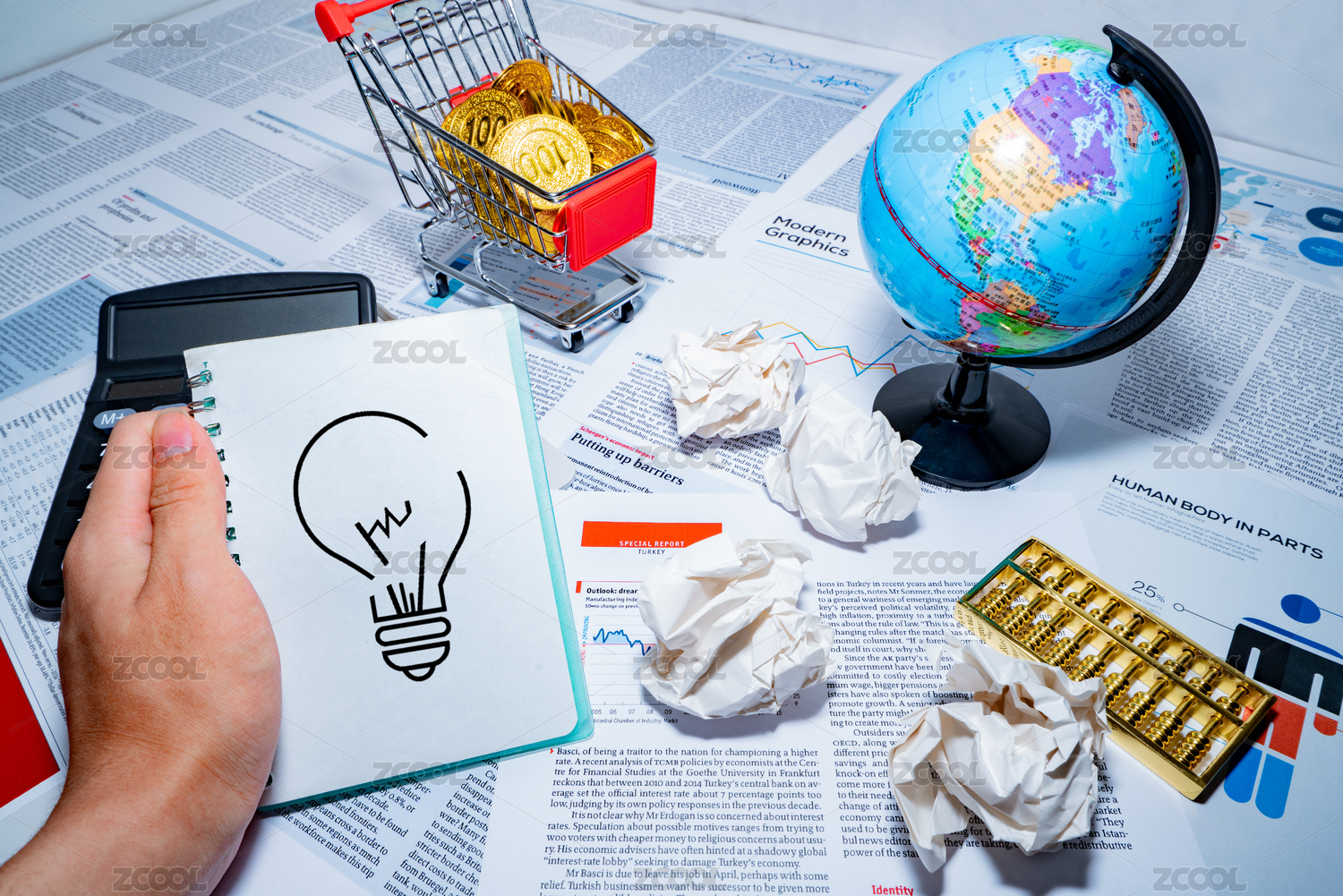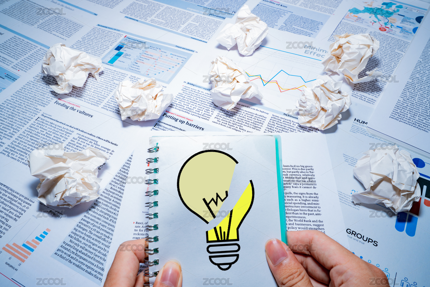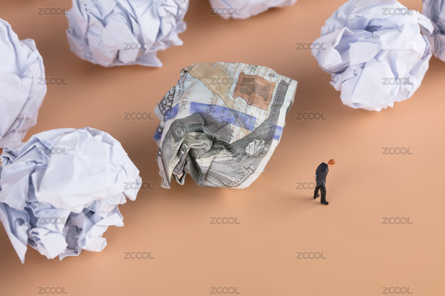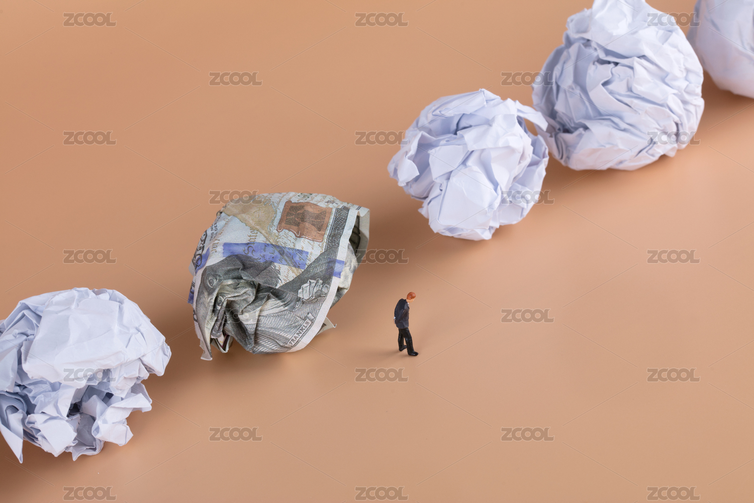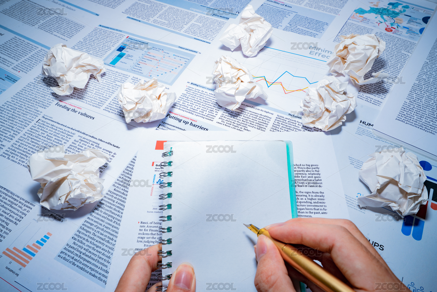 一個(gè)沒有任何靈感靈感枯竭的金融人士看著眼前的廢紙團(tuán)廢紙而煩惱