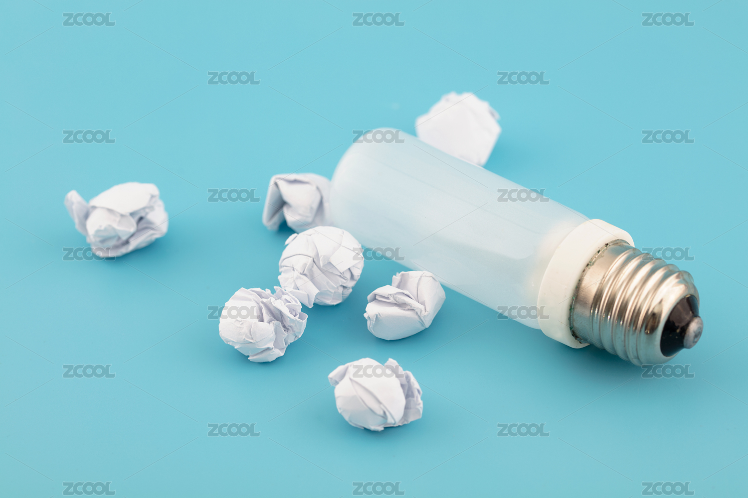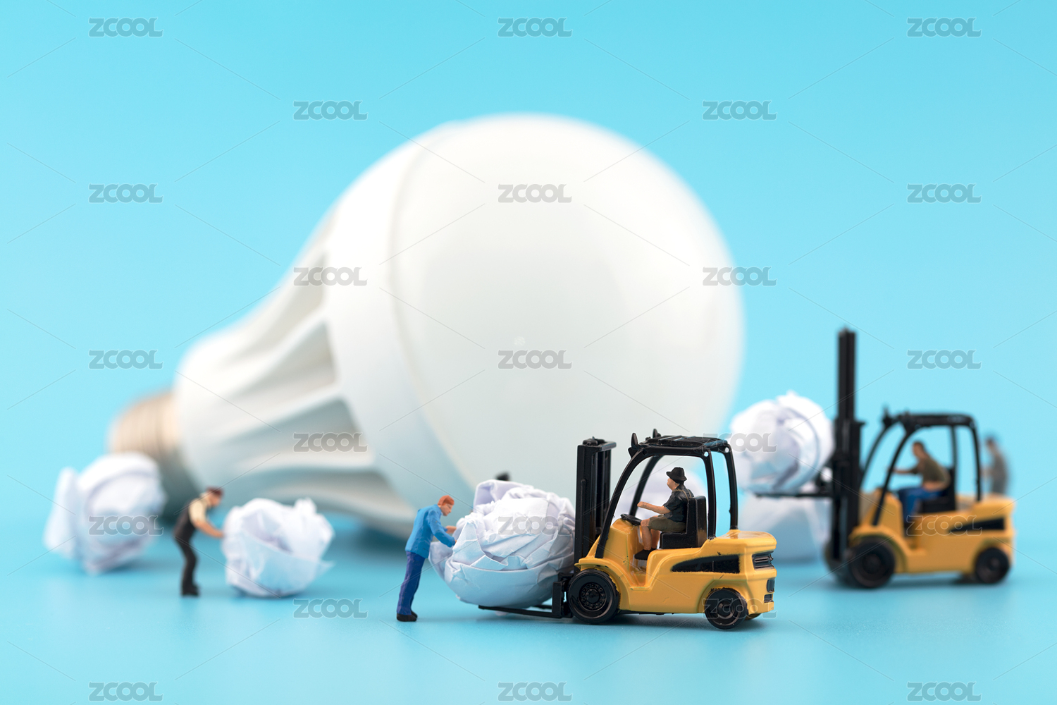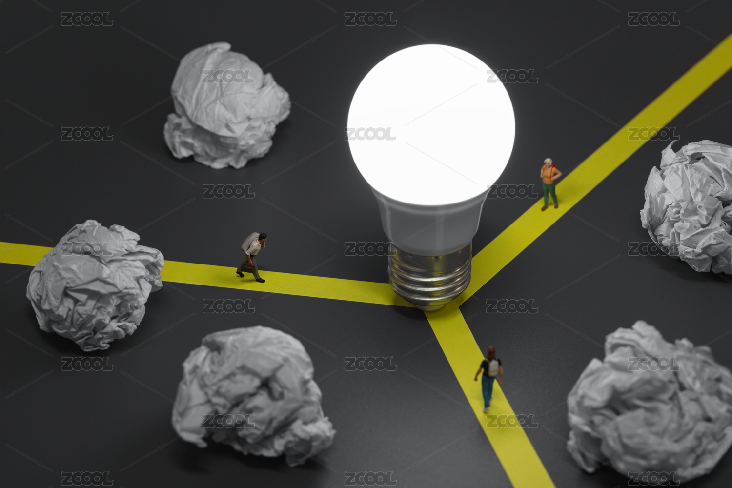 微縮創(chuàng)意廢紙團(tuán)下發(fā)亮的燈泡與人群