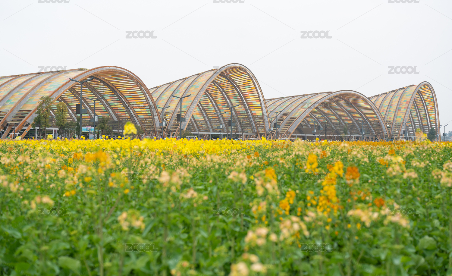 春天成都天府農(nóng)博園的多彩油菜花