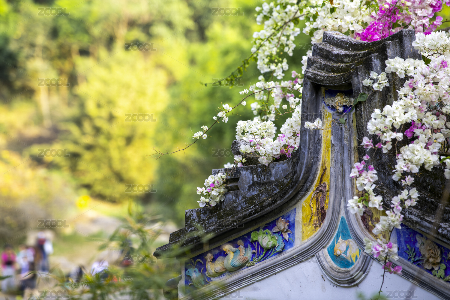 深圳園博園粉紅紫荊花與嶺南建筑圖