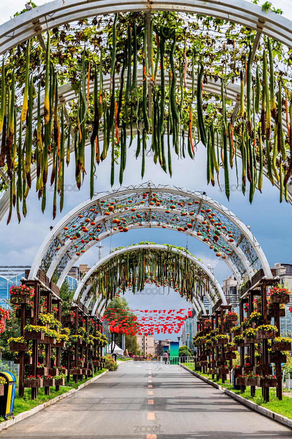 在天府農(nóng)博園花田里的紅燈籠走廊