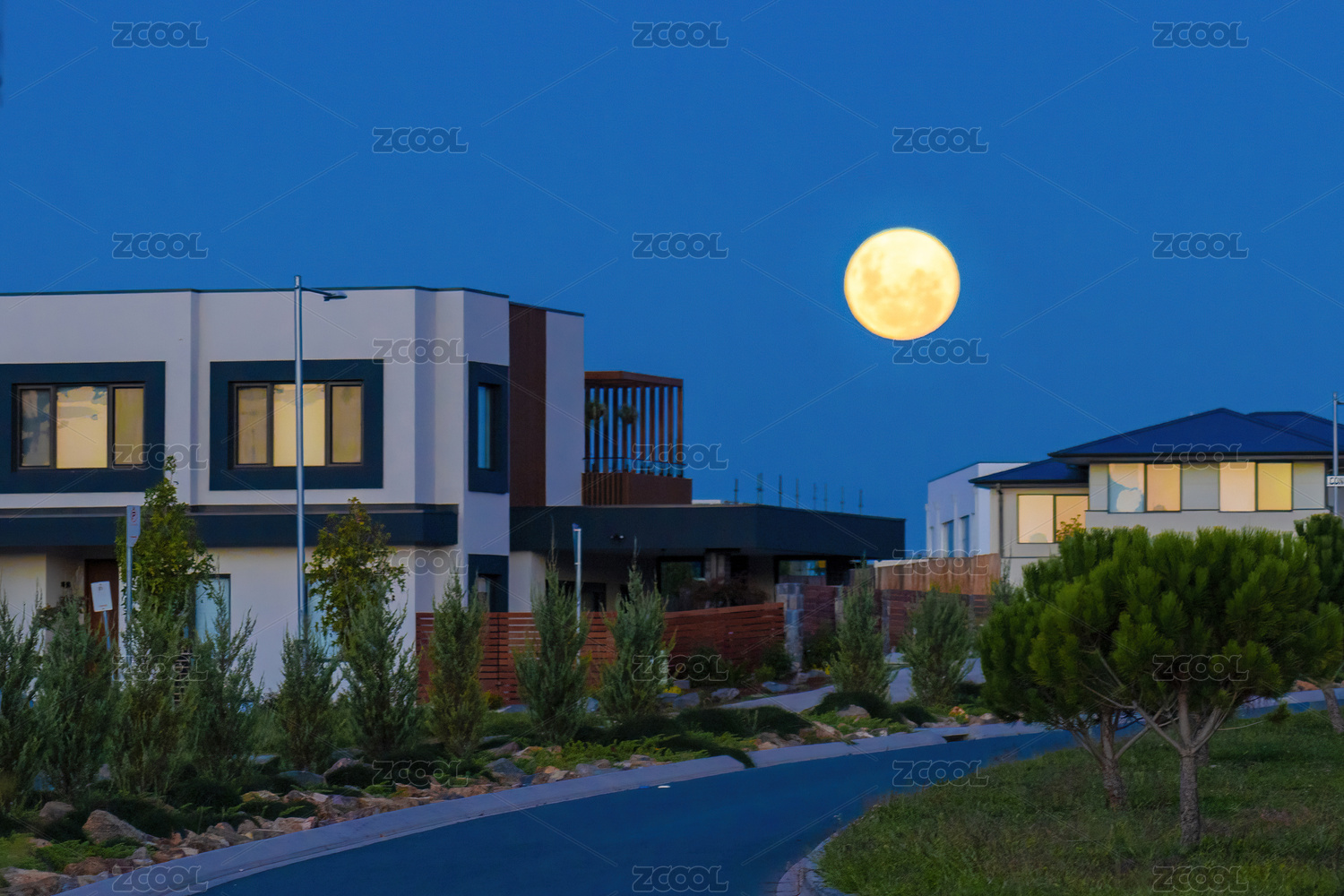 月亮下的山坡別墅群