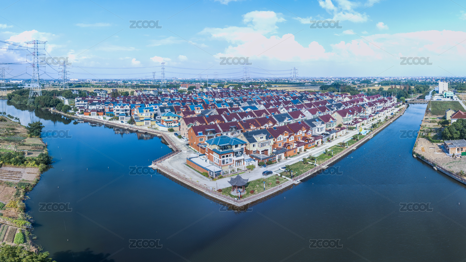 航拍江蘇吳江水鄉(xiāng)別墅群