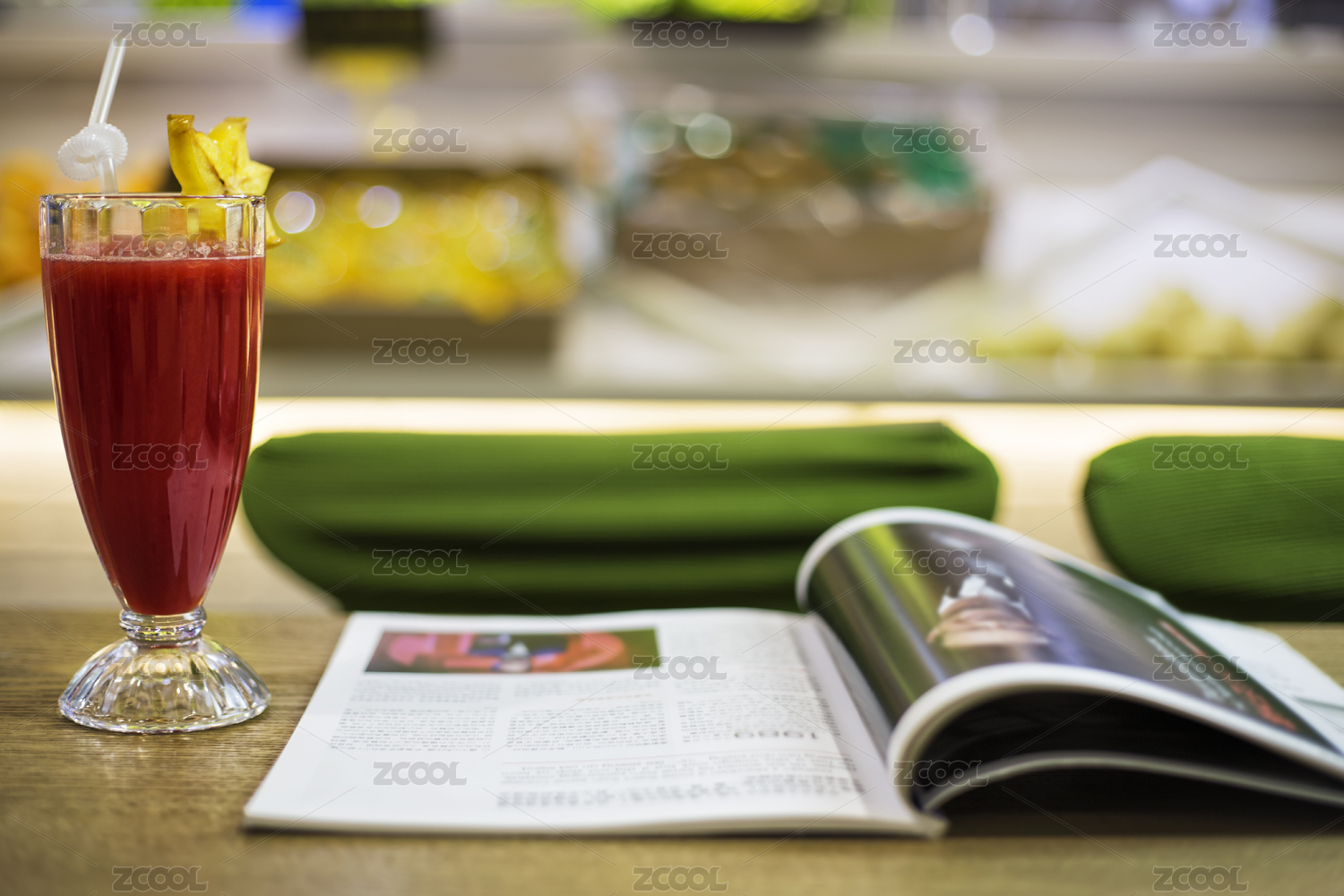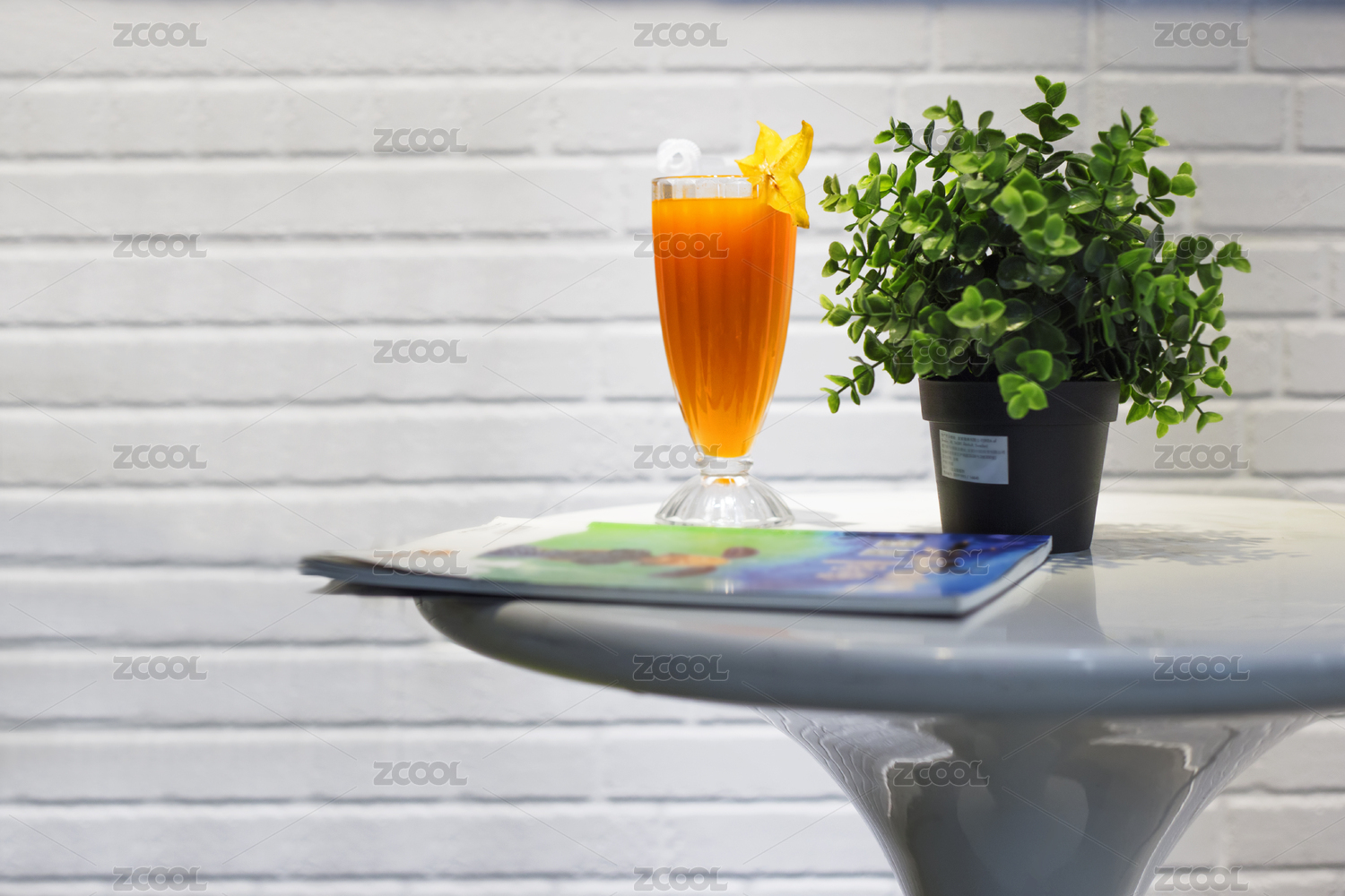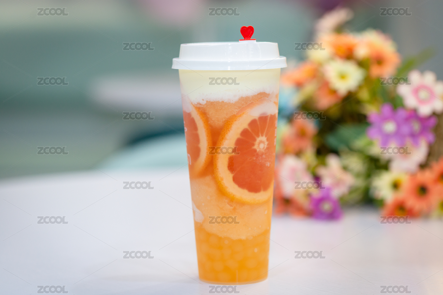 休閑吧白色桌子上放置的一杯西柚牛奶飲料