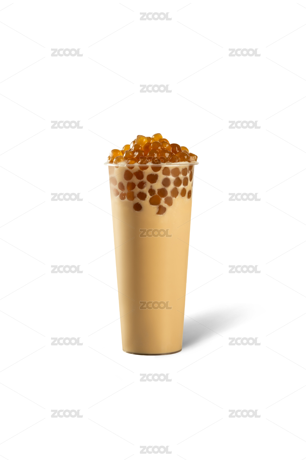 一杯在白色背景中的黃金珍珠奶茶飲料