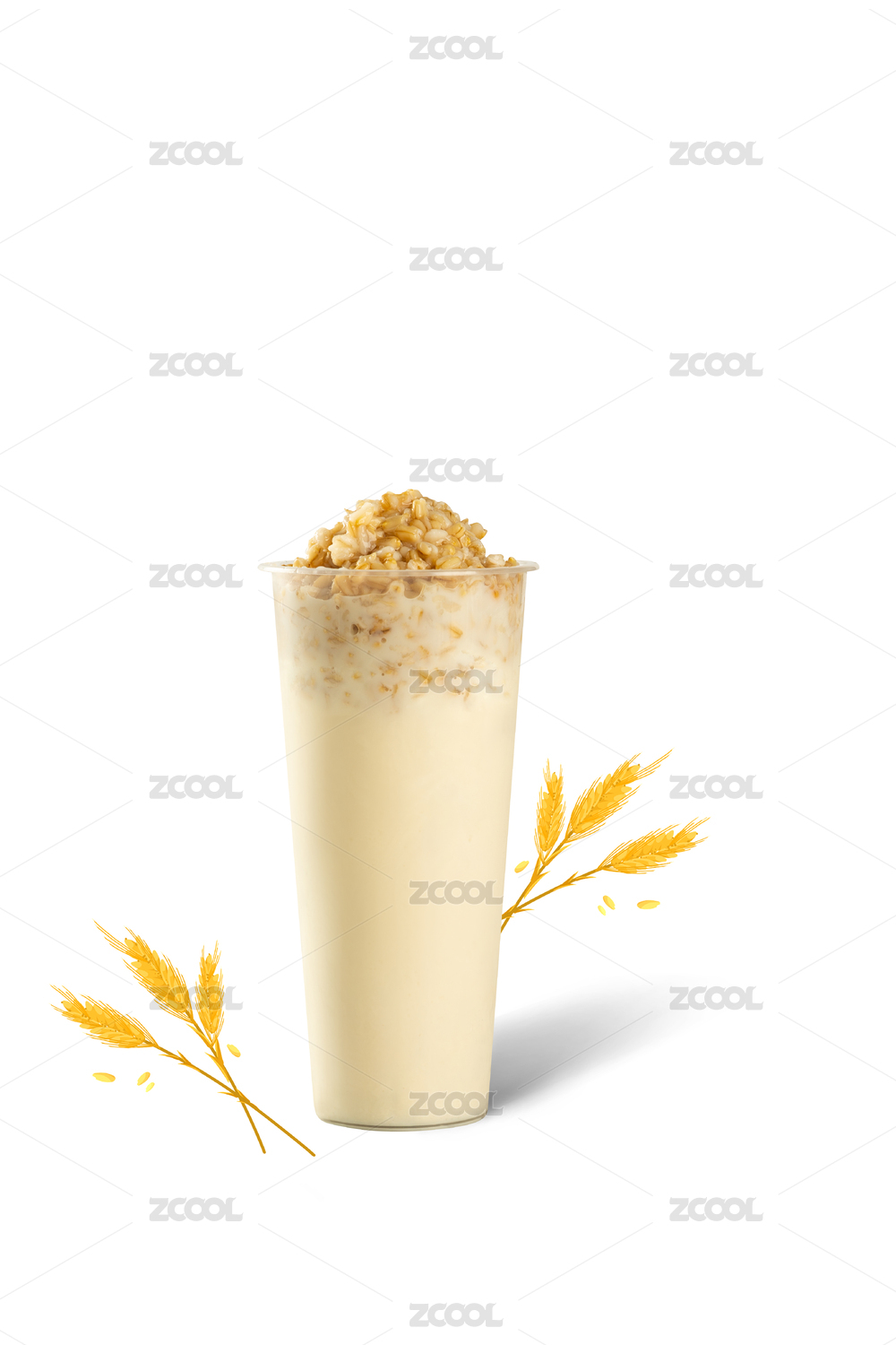 一杯在白色背景中的四季春燕麥奶茶飲料