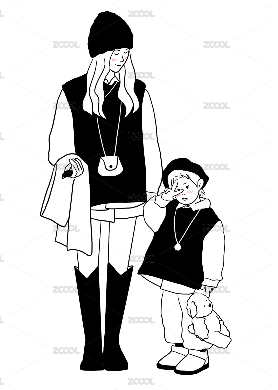 極簡(jiǎn)黑白插畫有愛親子裝