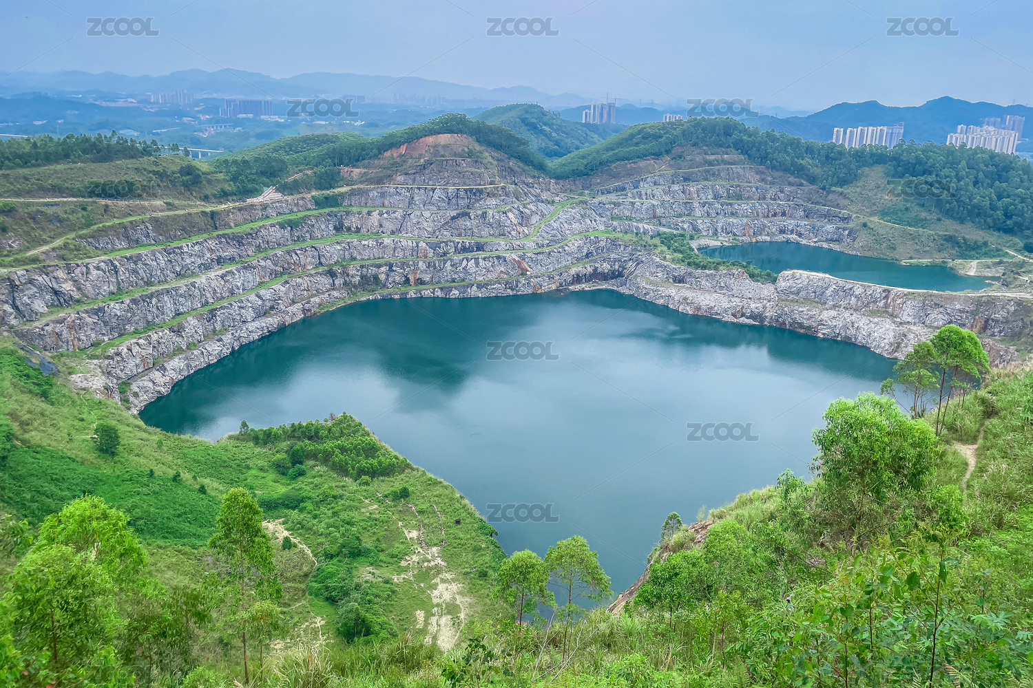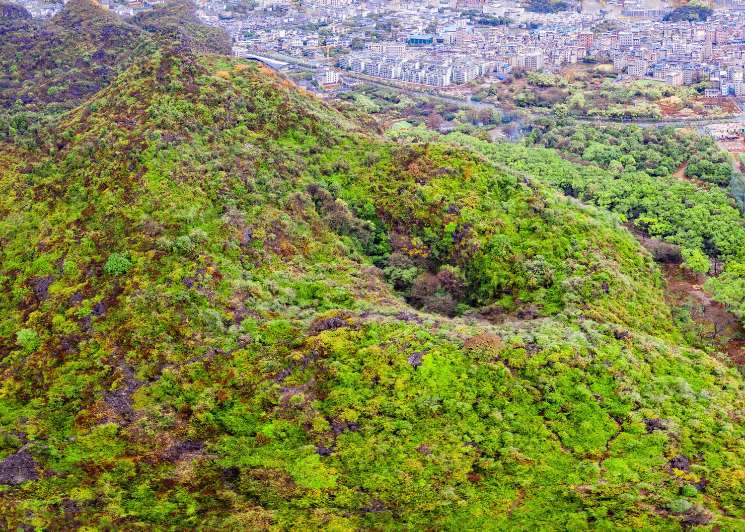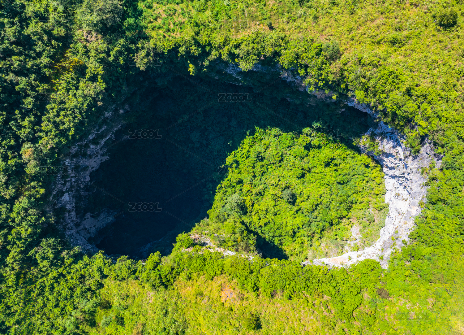 航拍桂林七星巖公園里的天坑