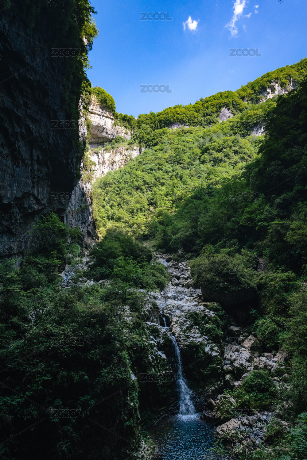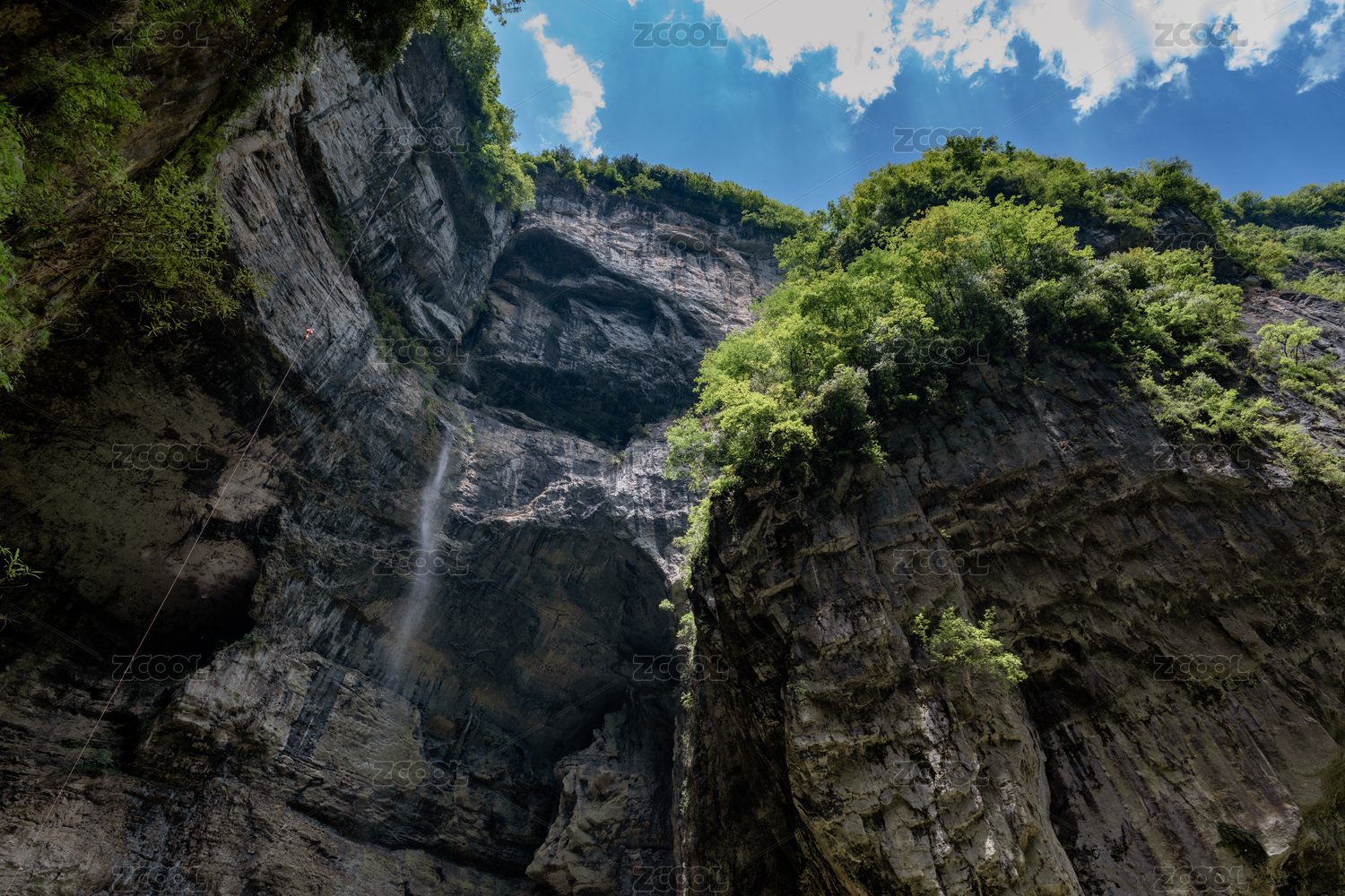 中國(guó)陜西漢中寧強(qiáng)大巴山中禪家?guī)r天坑的瀑布