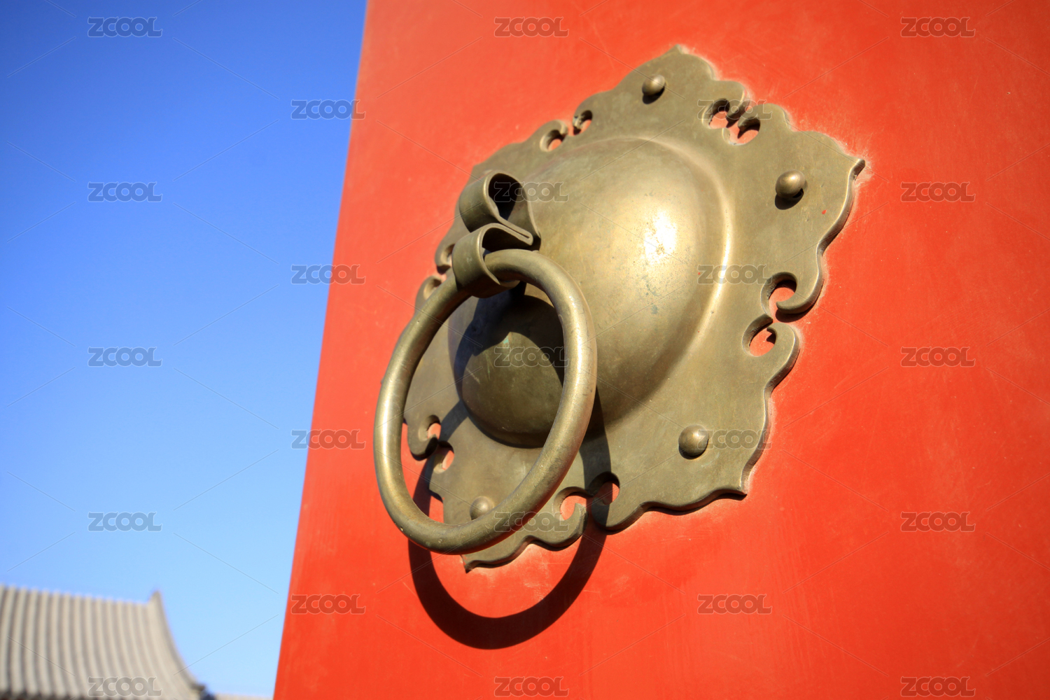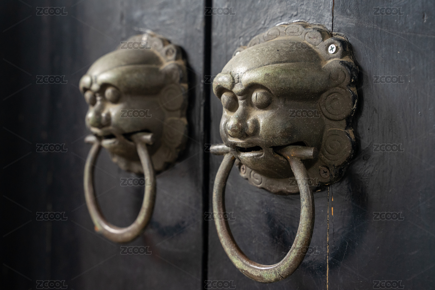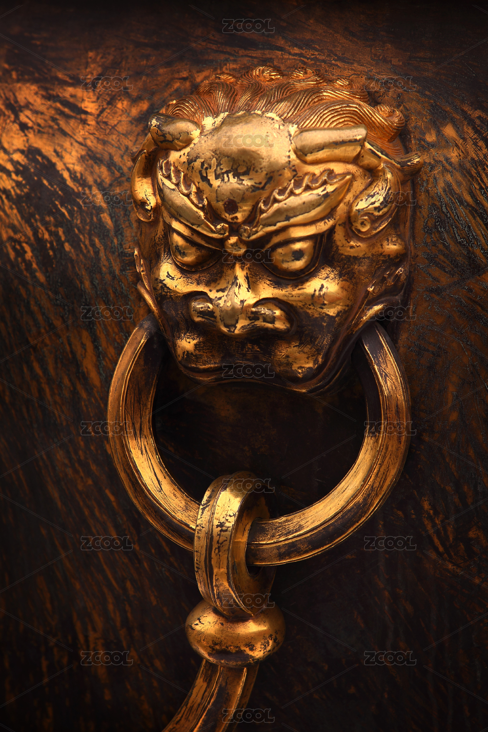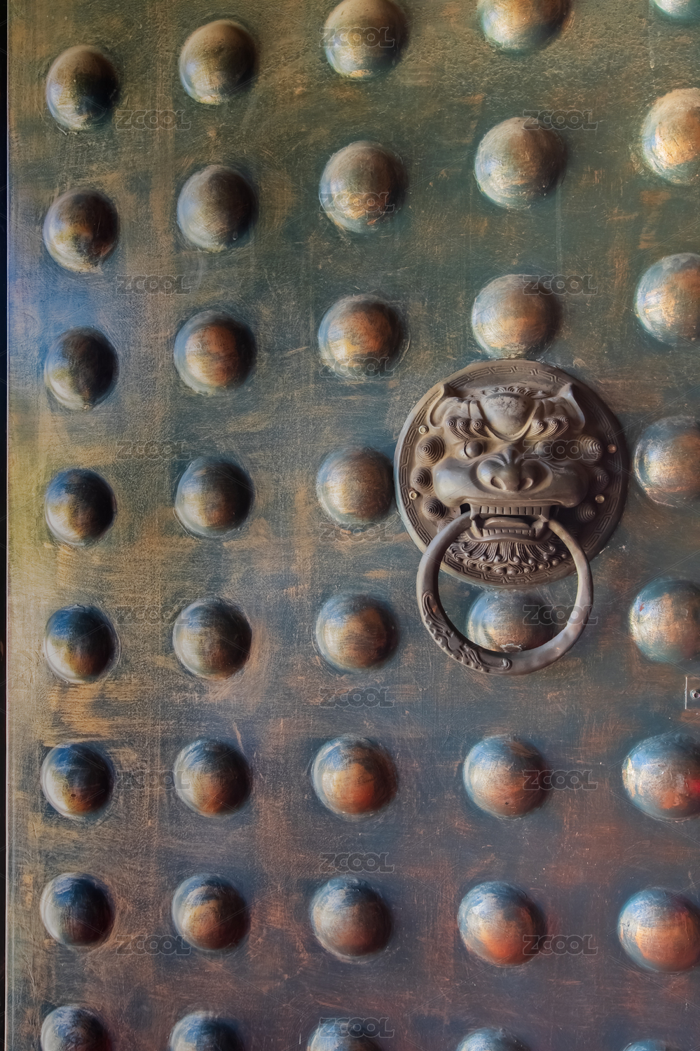 中國(guó)云南省昆明市黑龍?zhí)豆珗@木門上的銅門環(huán)