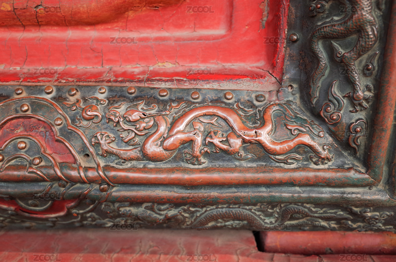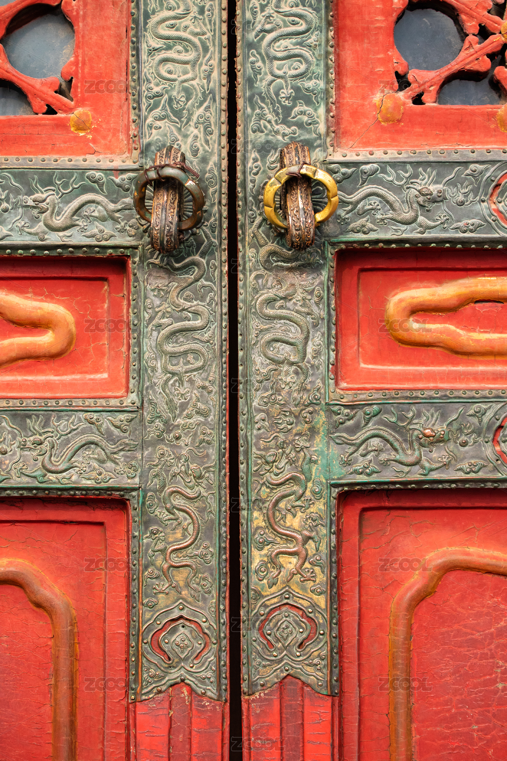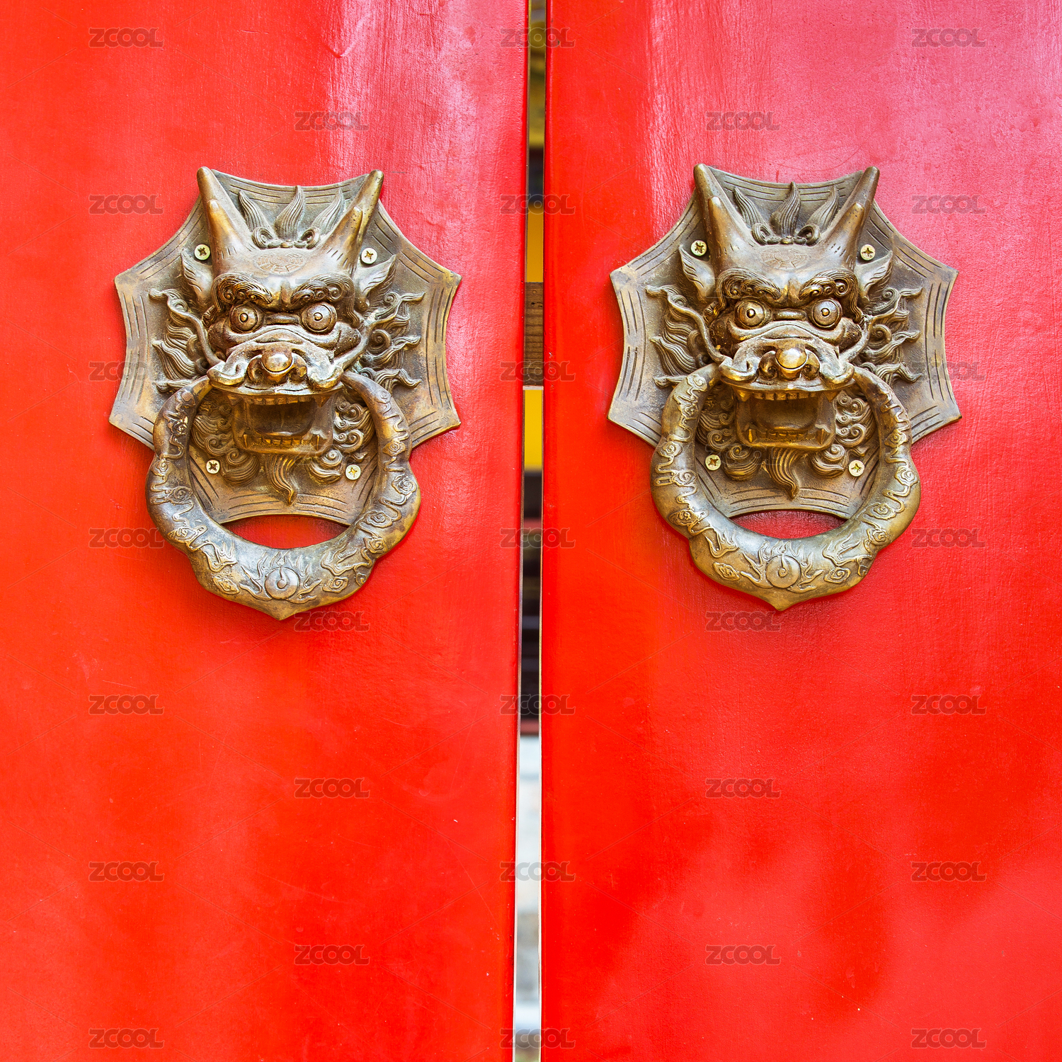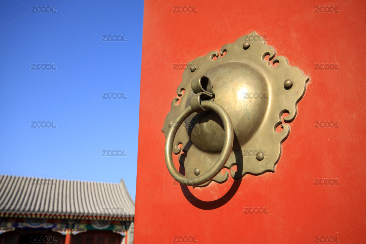 中國(guó)云南省昆明市黑龍?zhí)豆珗@木門上的銅門環(huán)