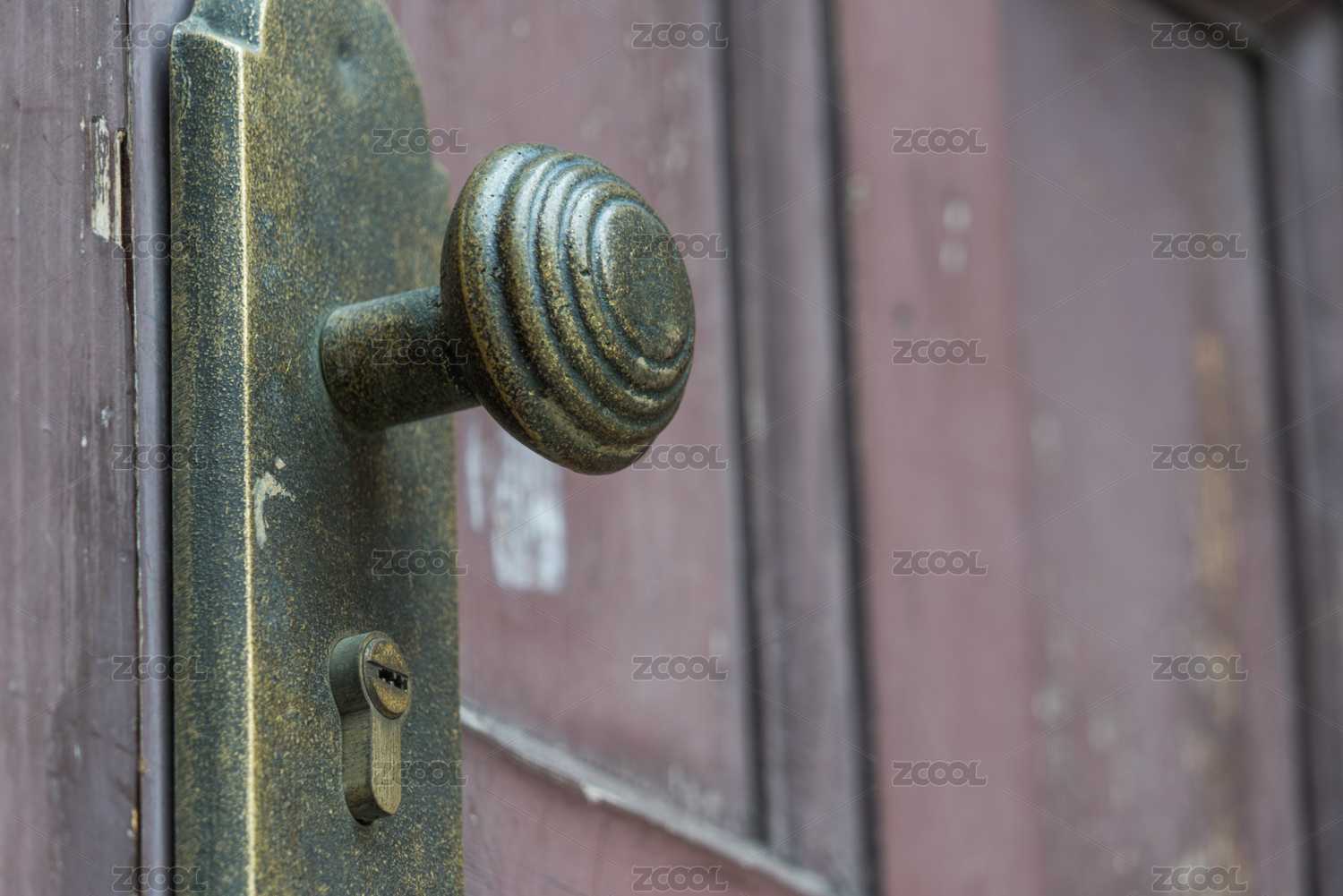 復(fù)古黃銅門把手的細(xì)節(jié)鏡頭。