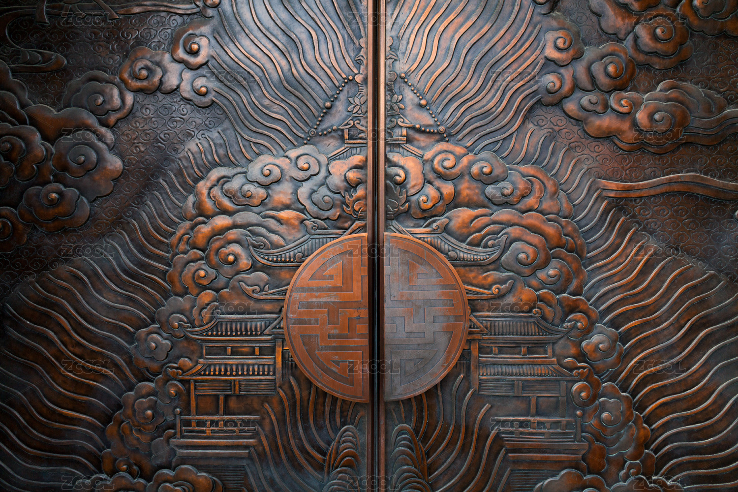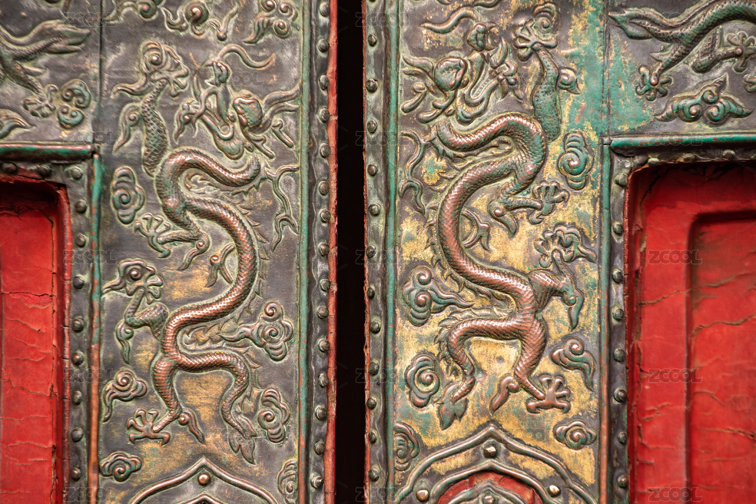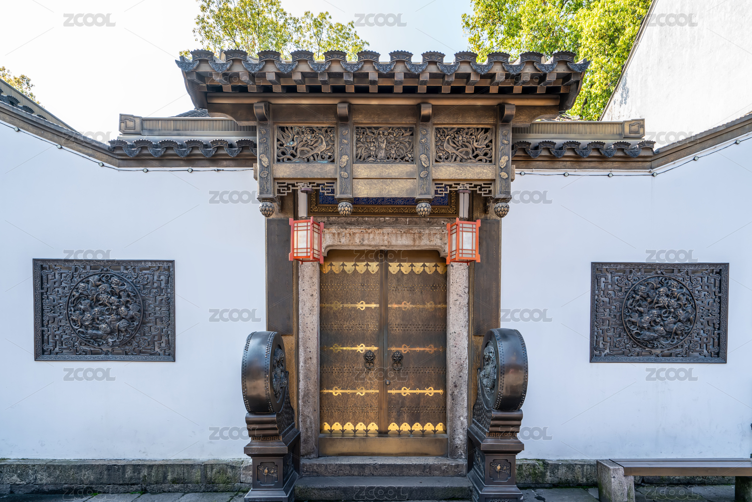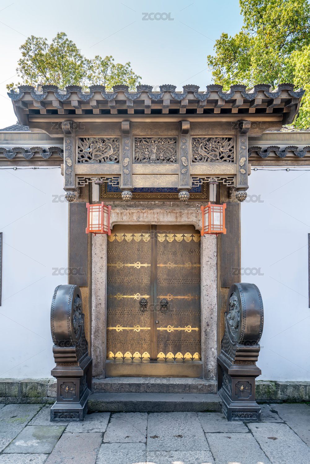 浙江紹興龍華寺莊嚴(yán)古樸的宮殿銅門