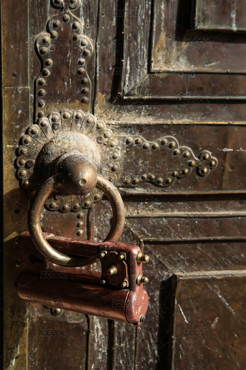 中國(guó)新疆喀什艾提尕爾清真寺古老銅門上的大