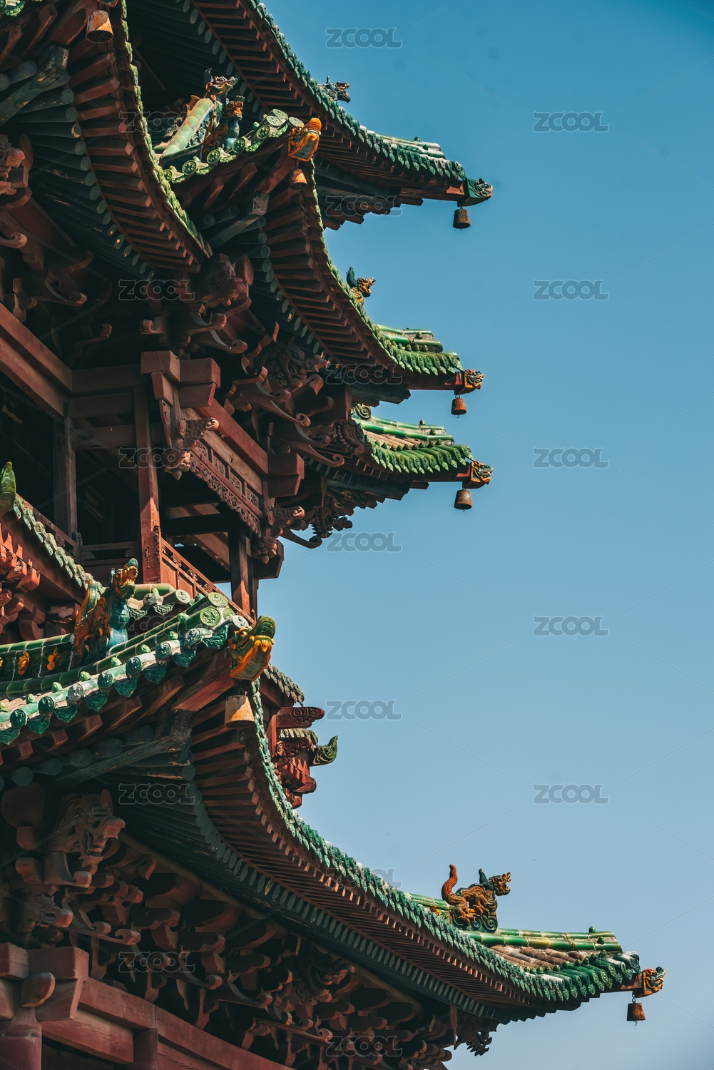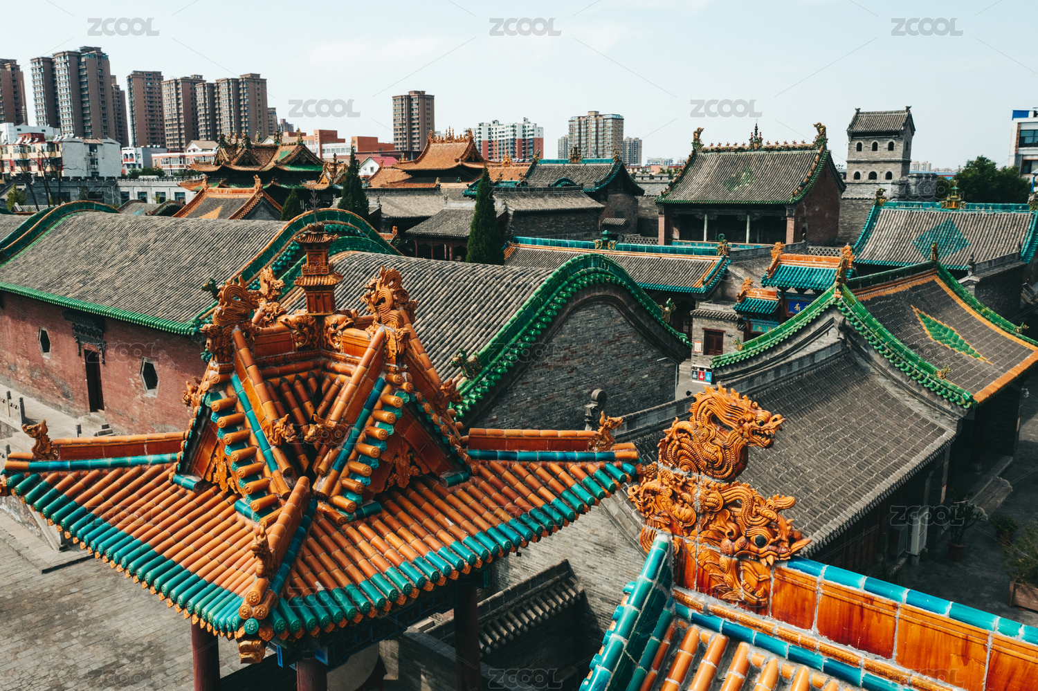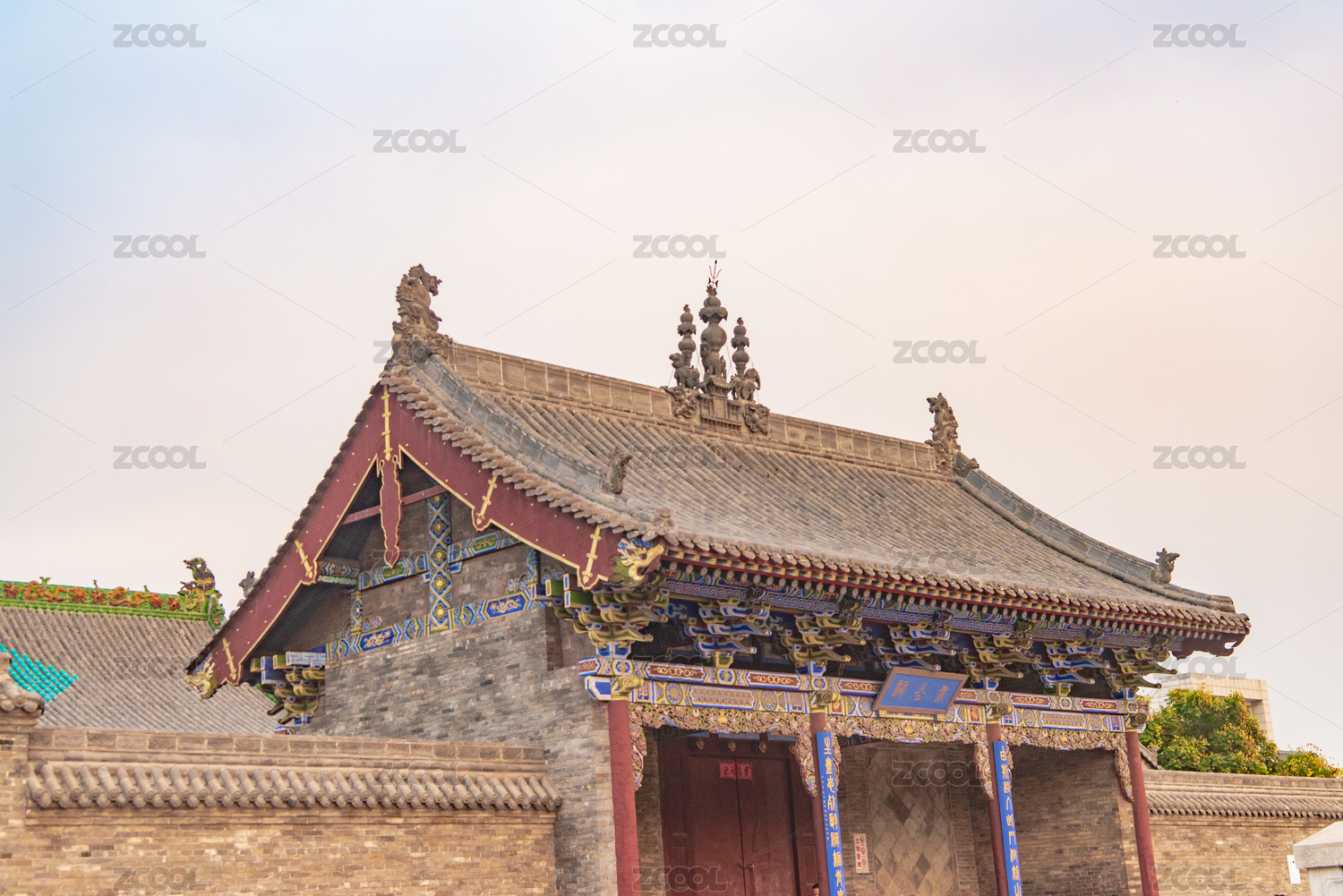 山西省介休市后土廟古建筑門窗及琉璃照壁