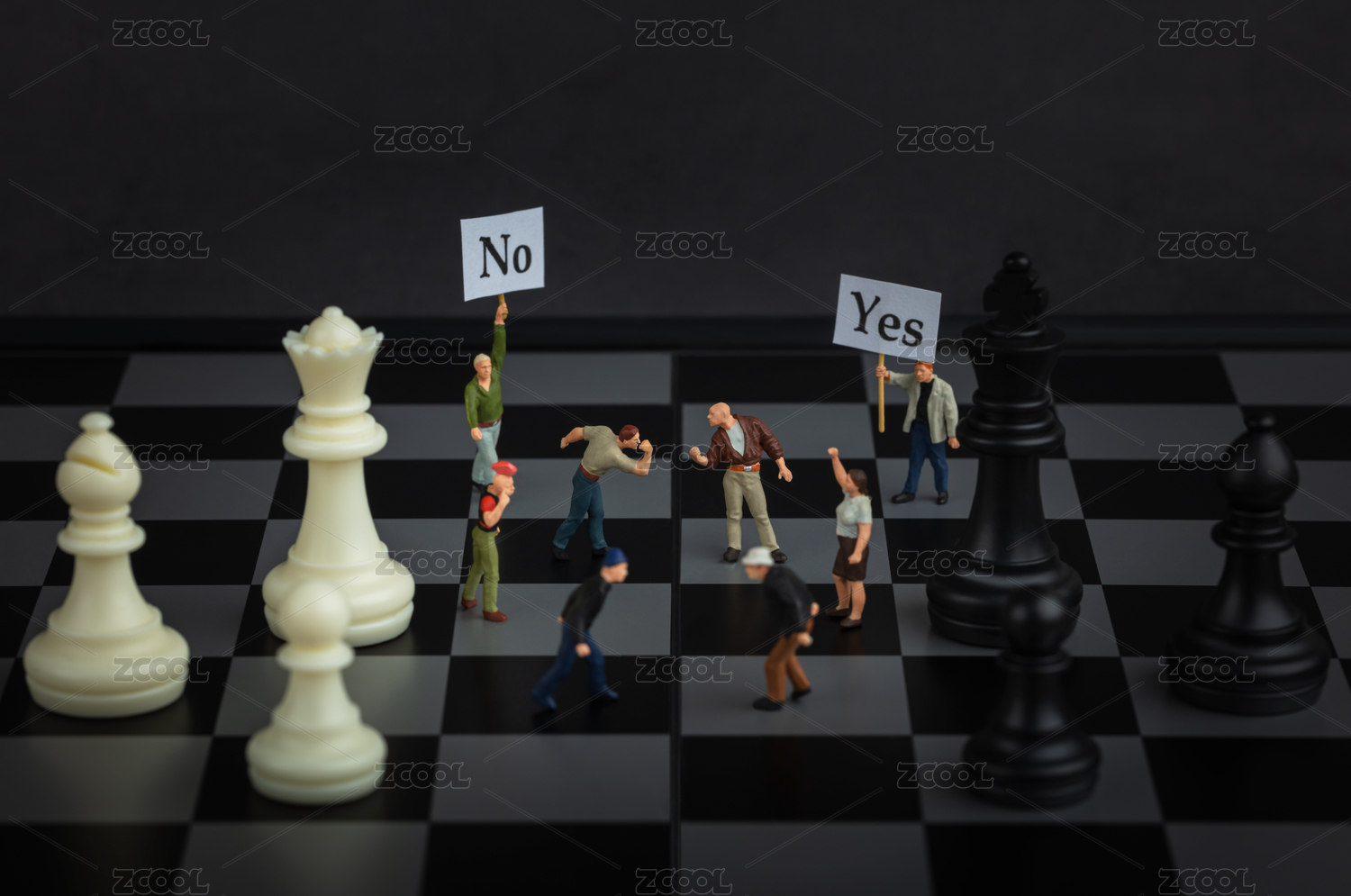 微縮創(chuàng)意在各自立場坐著對話的兩個男性