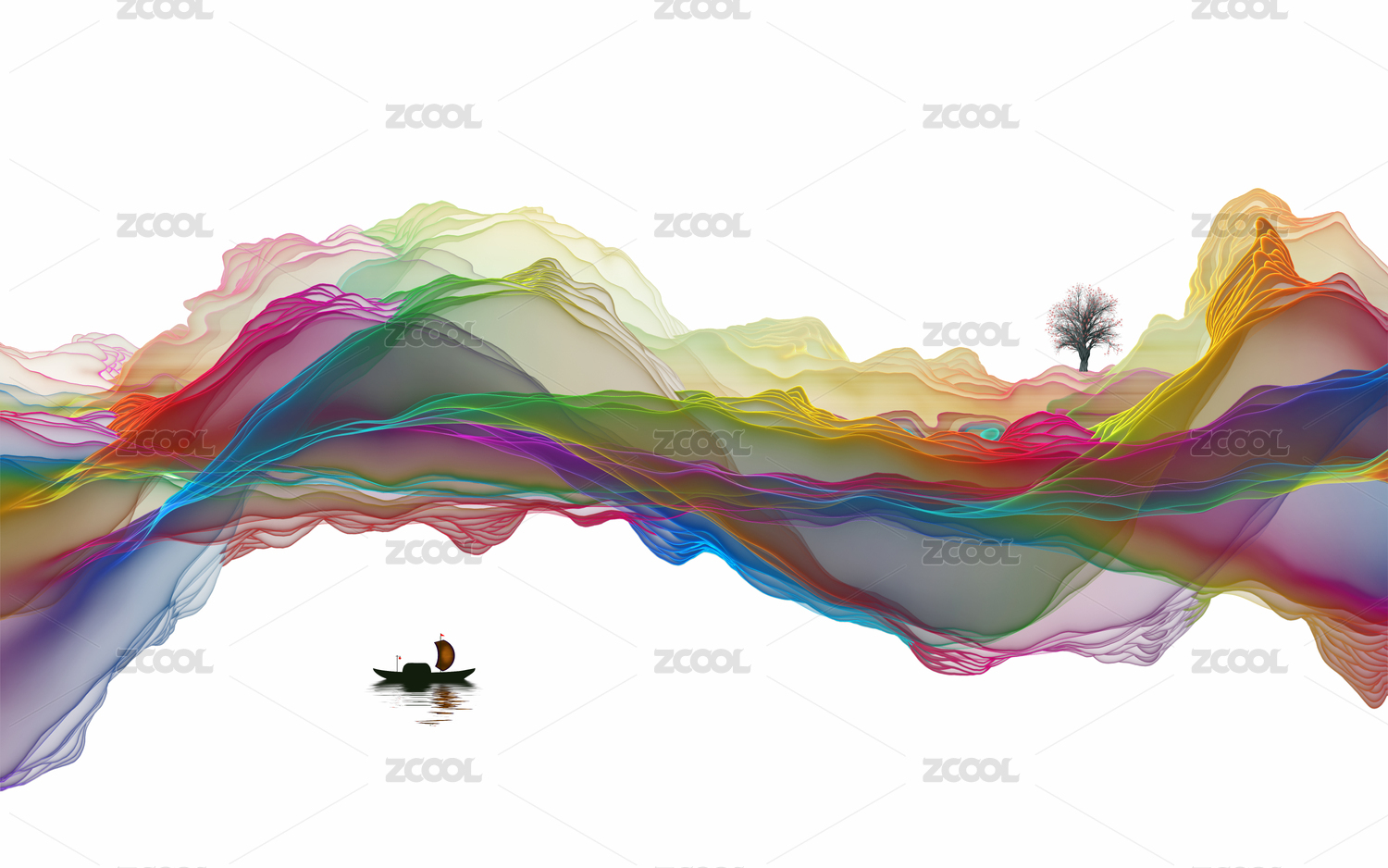 抽象裝飾畫新中式藝術(shù)水墨山水