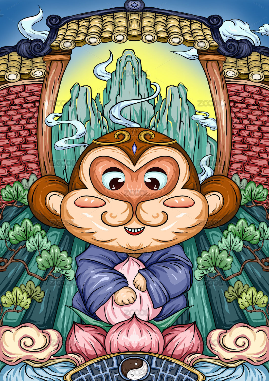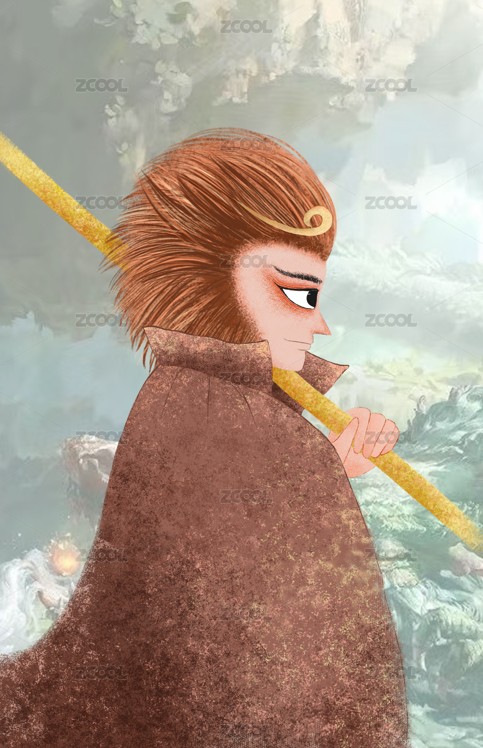 中國風(fēng)國潮復(fù)古西游記齊天大圣孫悟空插畫