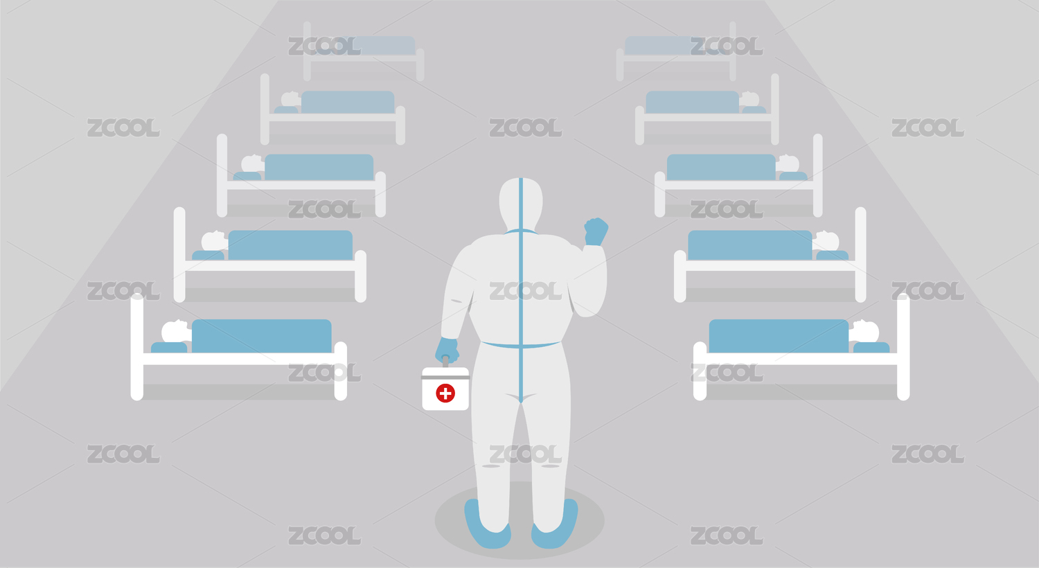 醫(yī)院病房穿防護(hù)服的醫(yī)生在跟病人交談