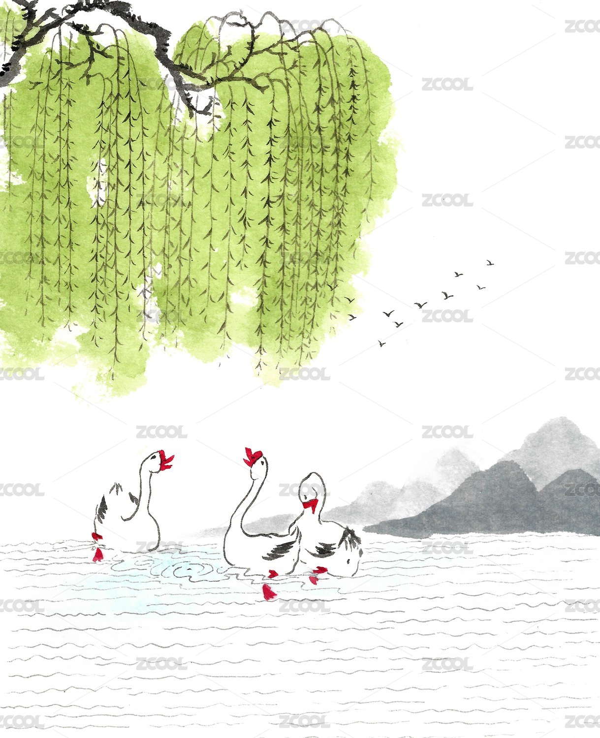 手繪二十四節(jié)氣插畫古詩詠鵝插圖