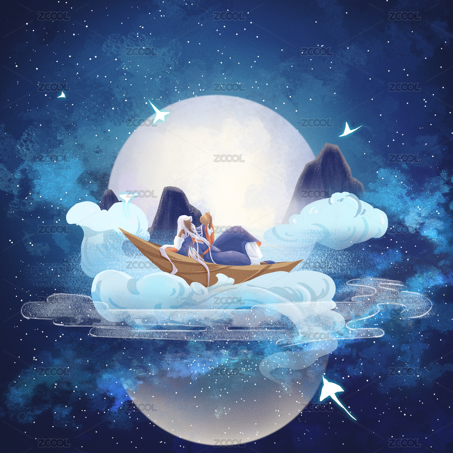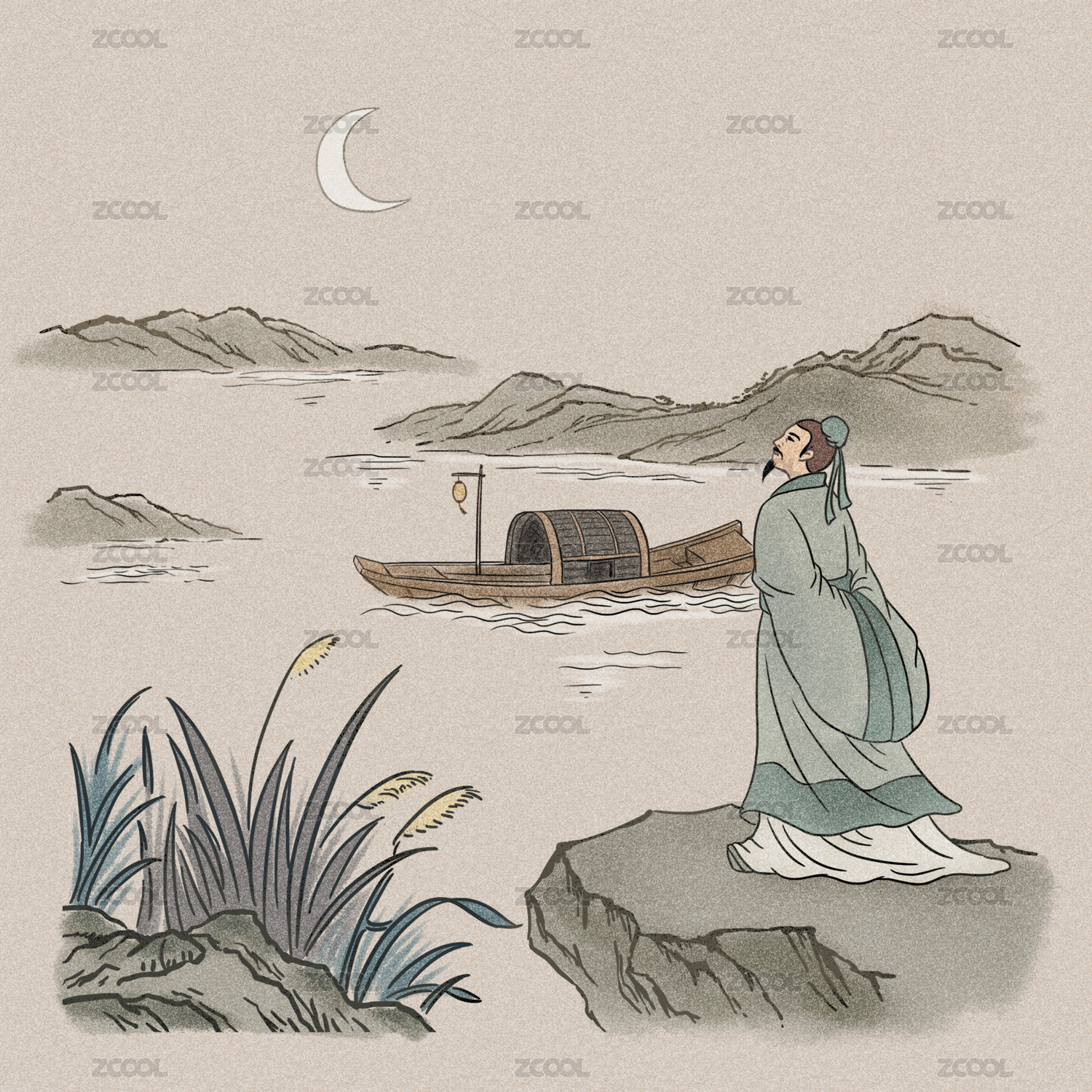 曉風(fēng)殘月江邊送別詩酒系列主題插畫