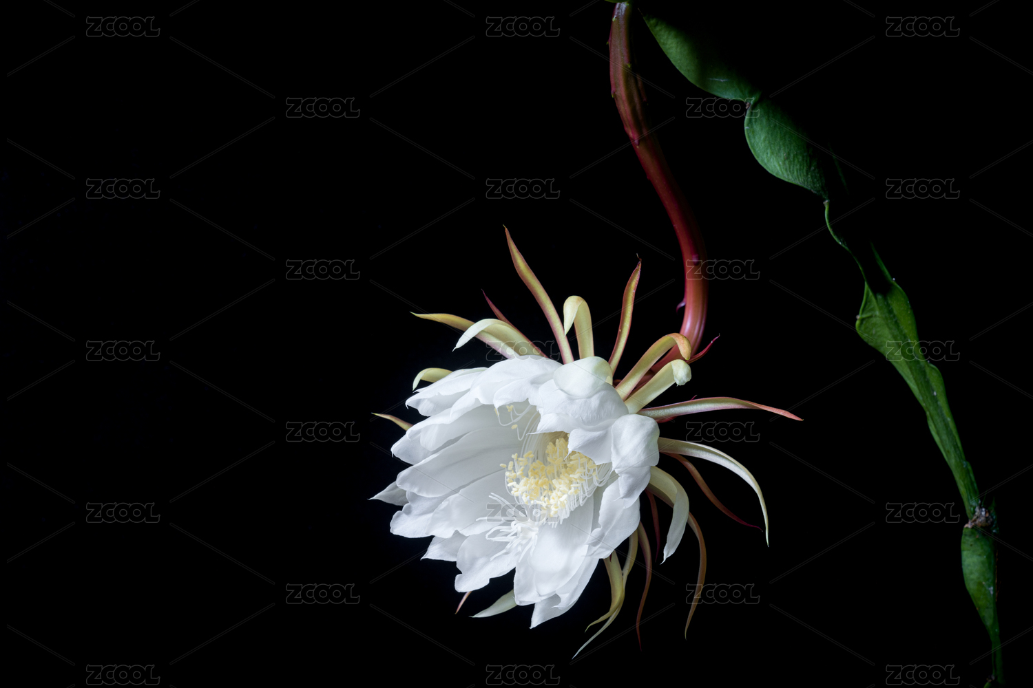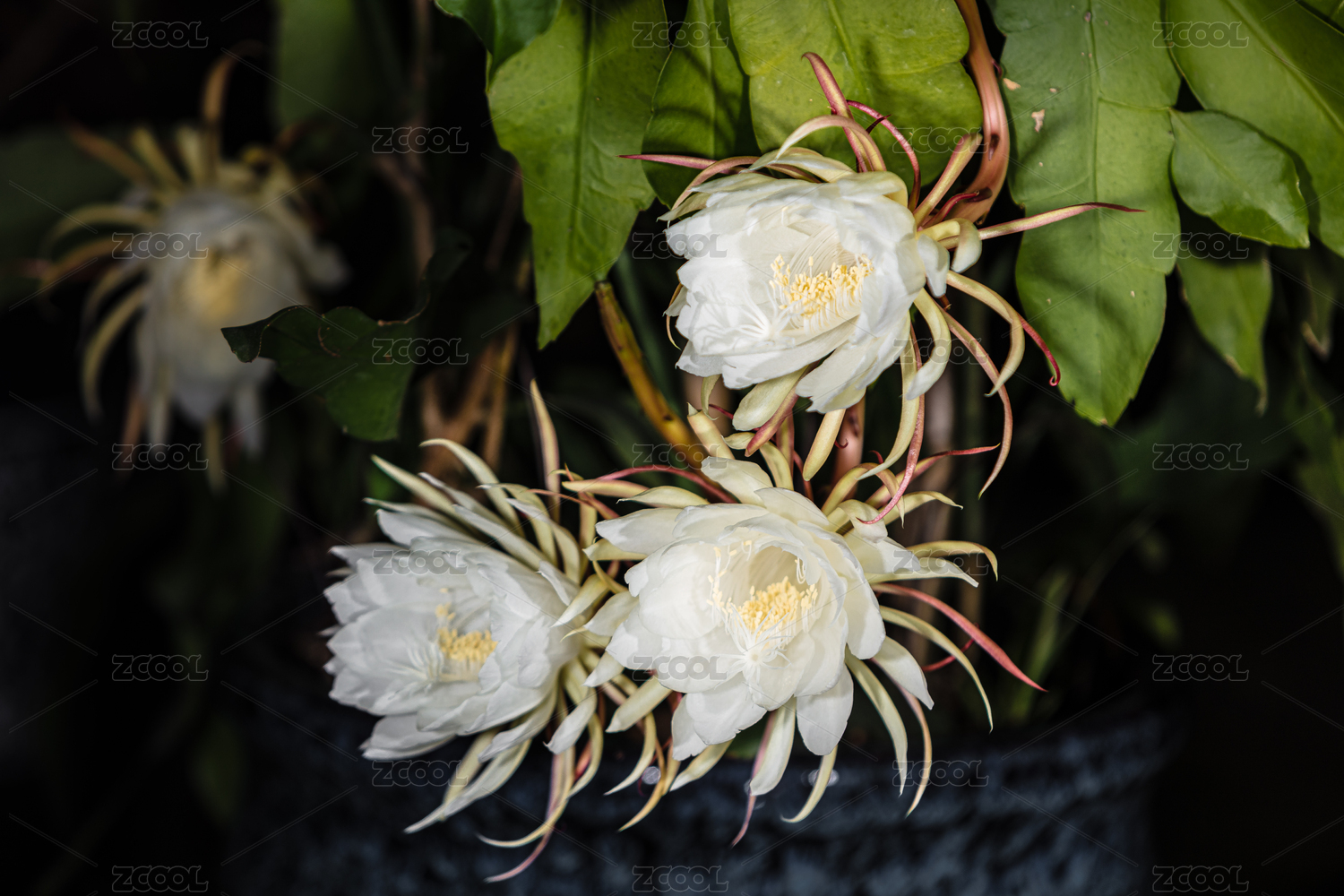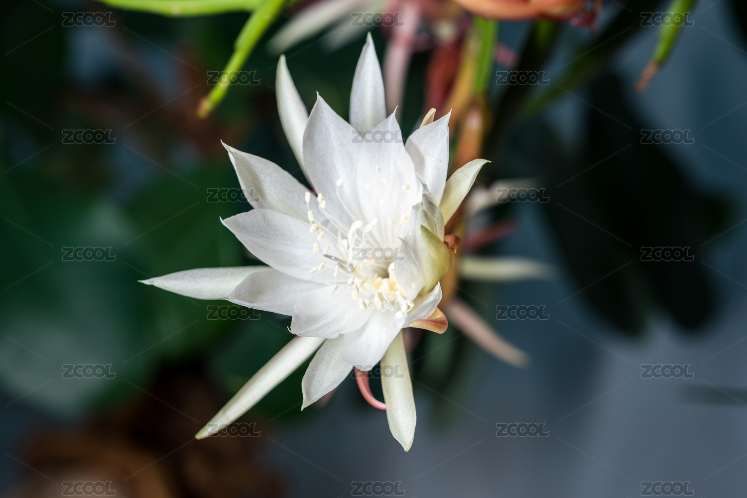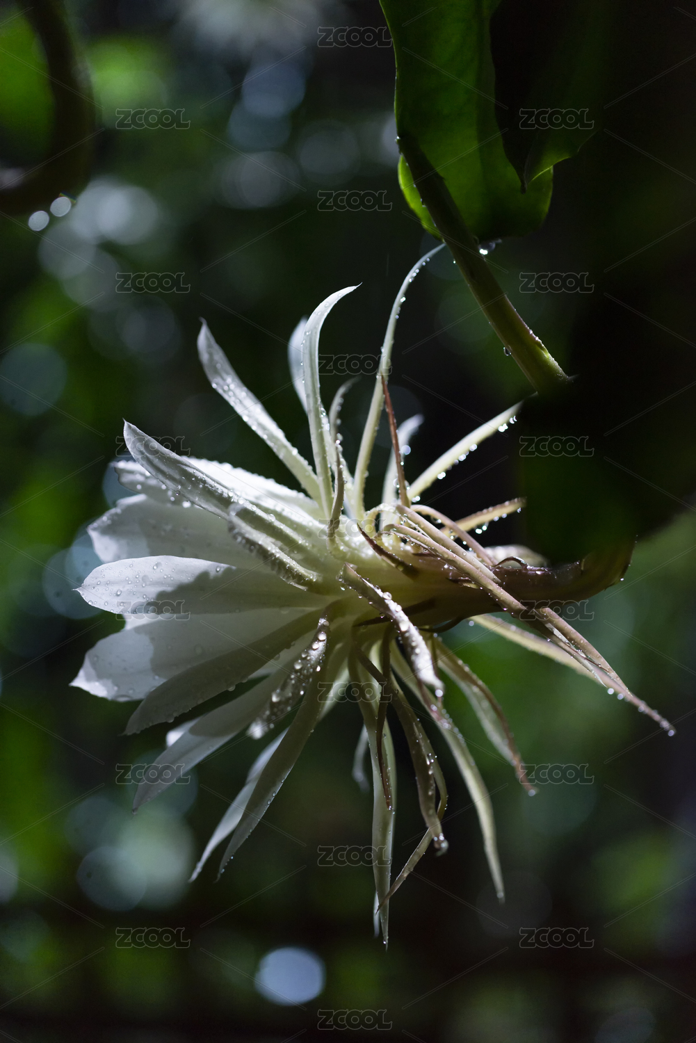 雨夜里一朵盛開的潔白曇花側(cè)面,福建龍巖