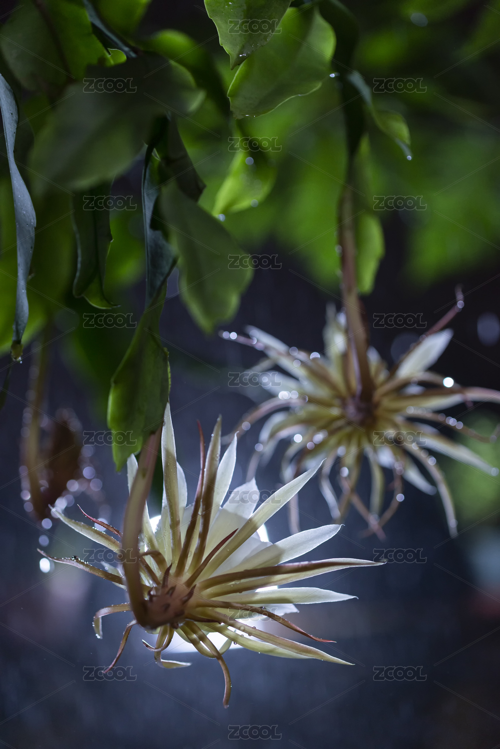 雨夜里盛開的潔白曇花特寫,福建龍巖