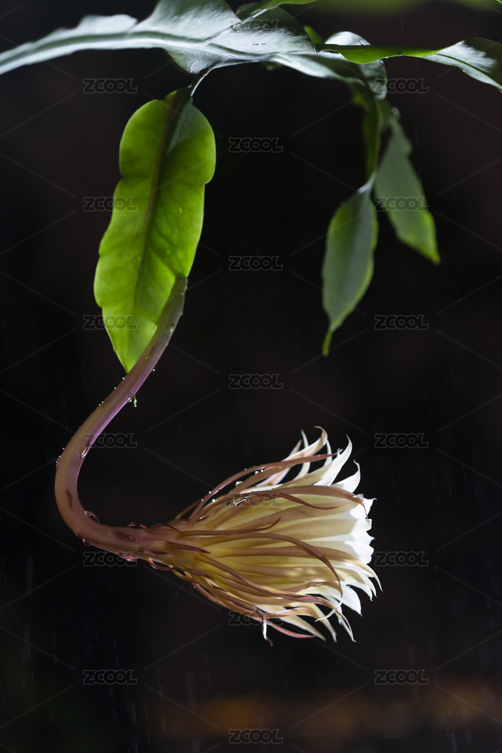雨夜里一朵曇花側(cè)面特寫,福建龍巖