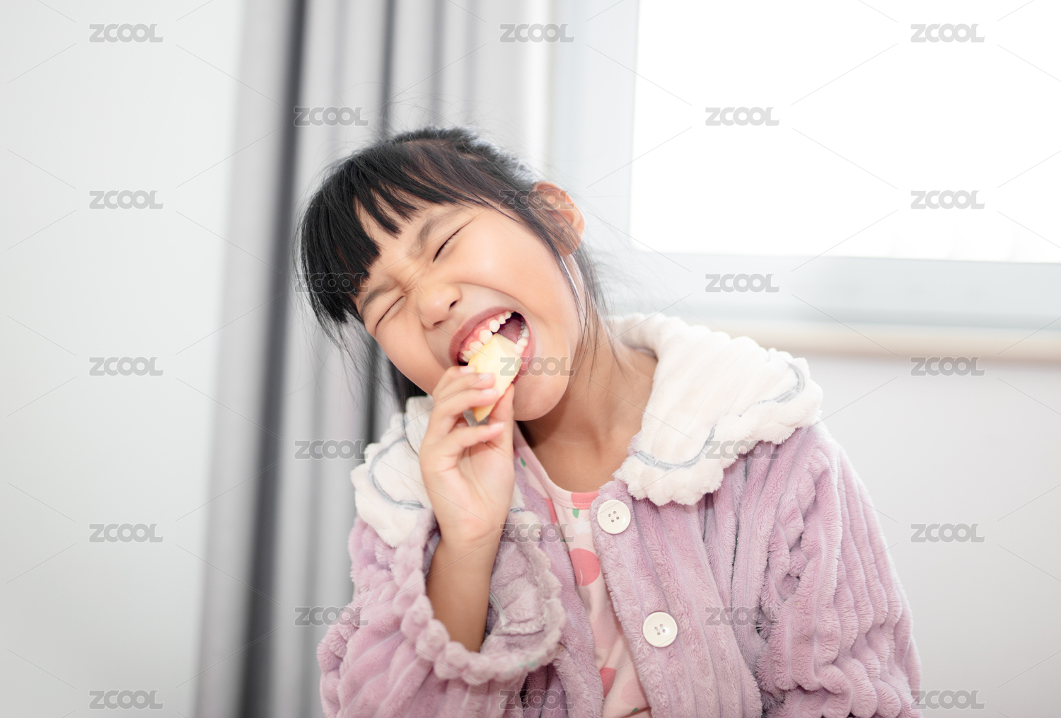 亞洲中國人小朋友小孩吃東西吃餅干吃零食