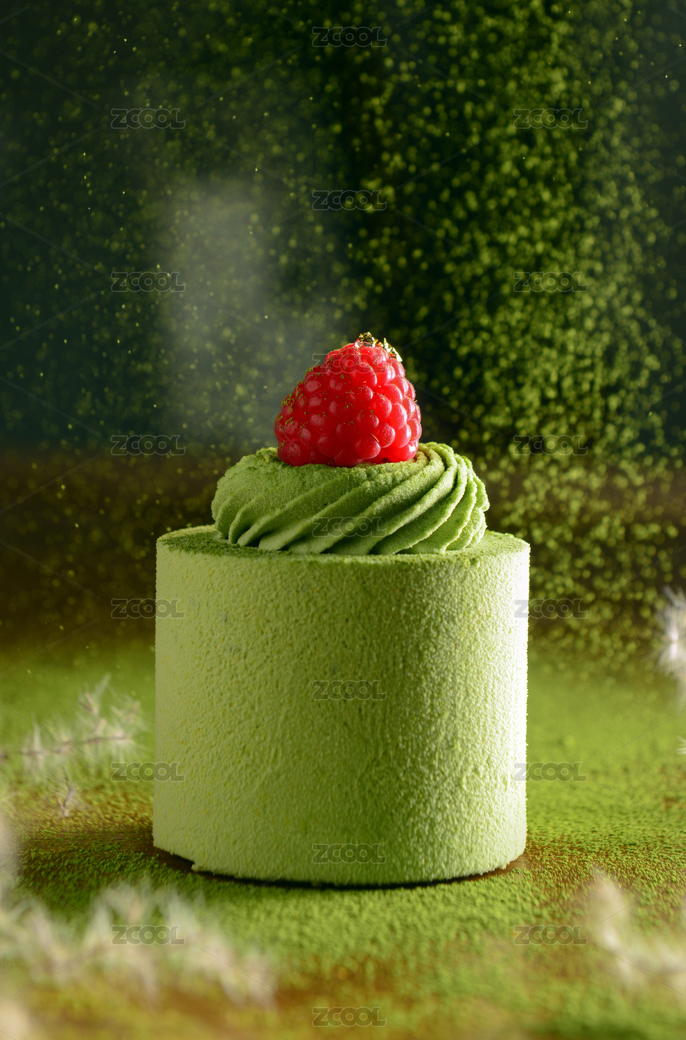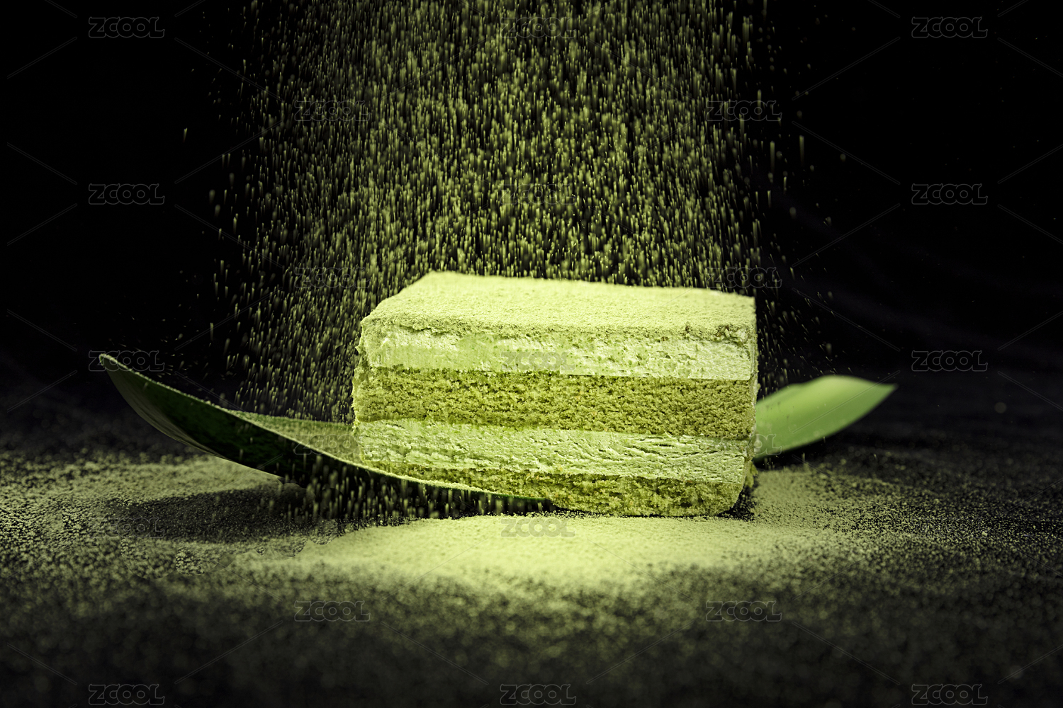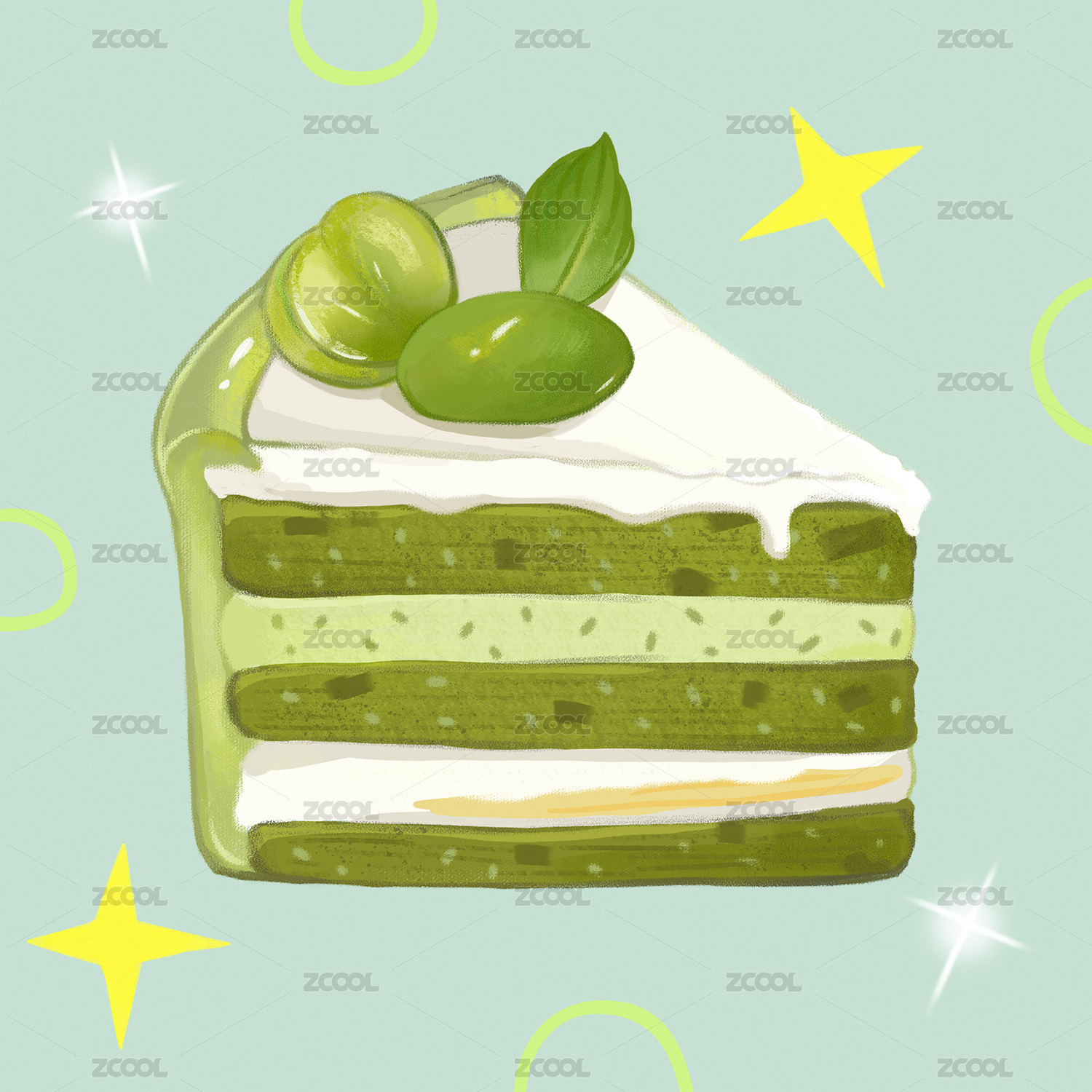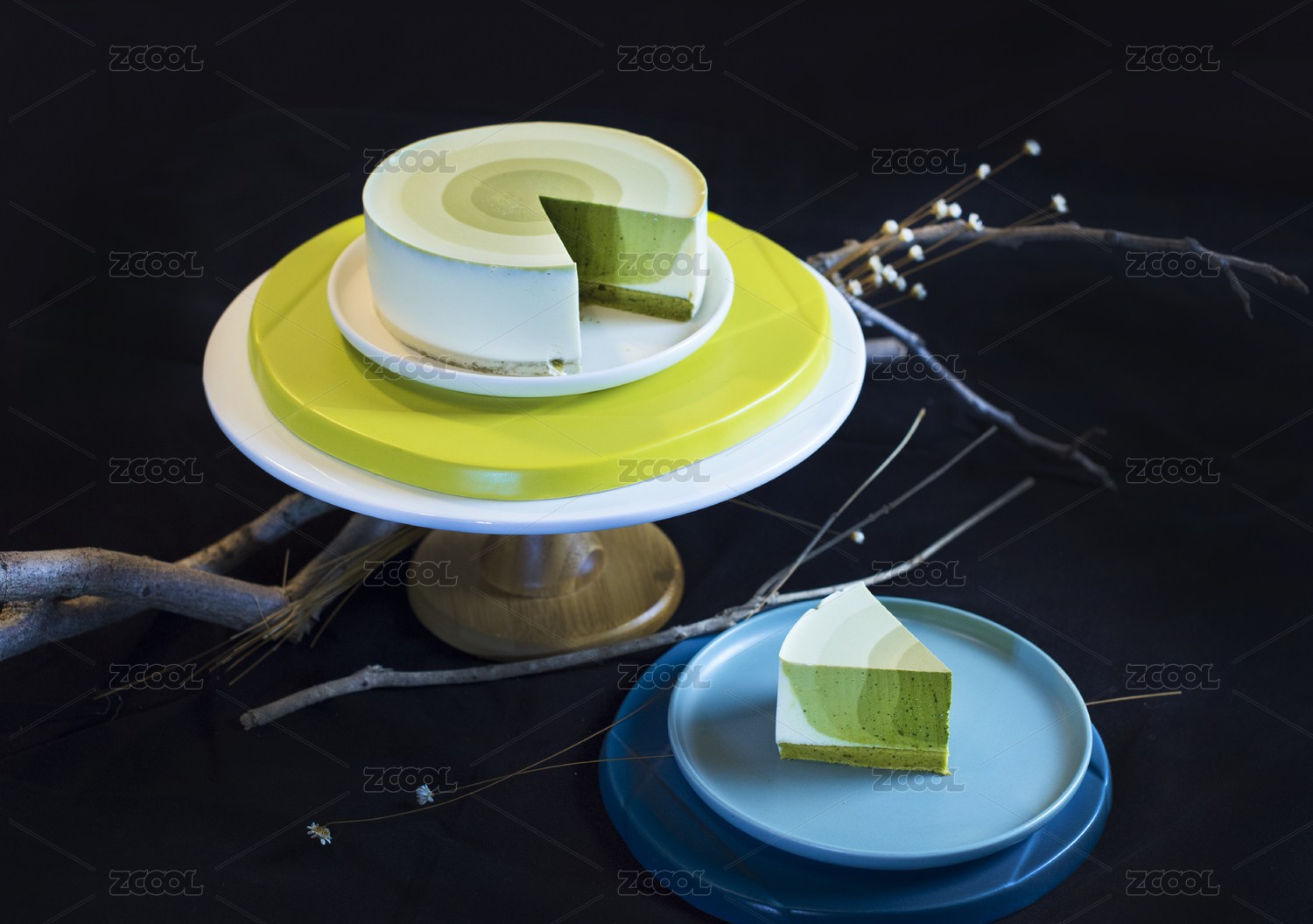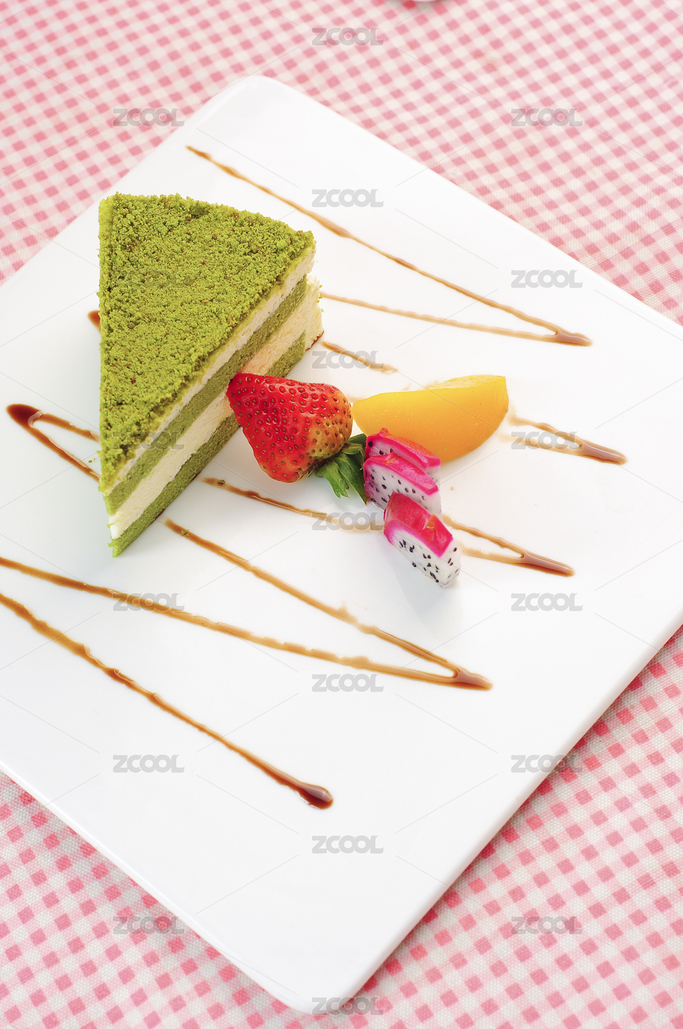 桌面上的盤子里的美味可口的抹茶蛋糕卷