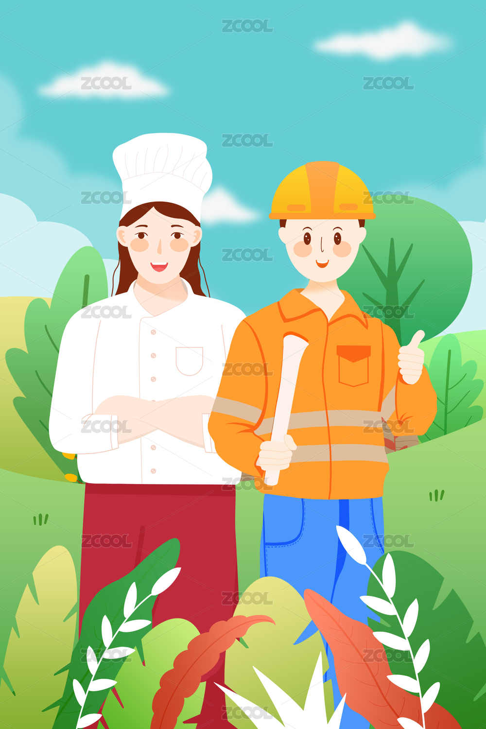 五一勞動(dòng)節(jié)插畫建筑師廚師勞動(dòng)者插圖