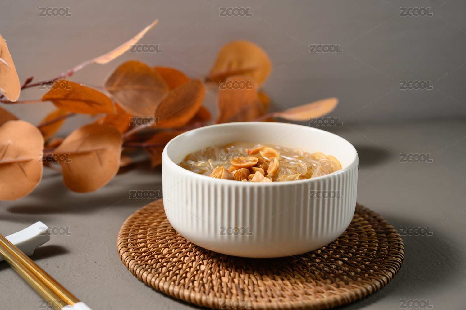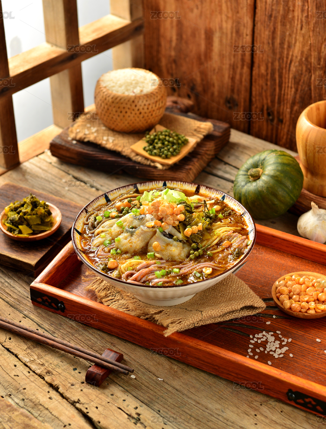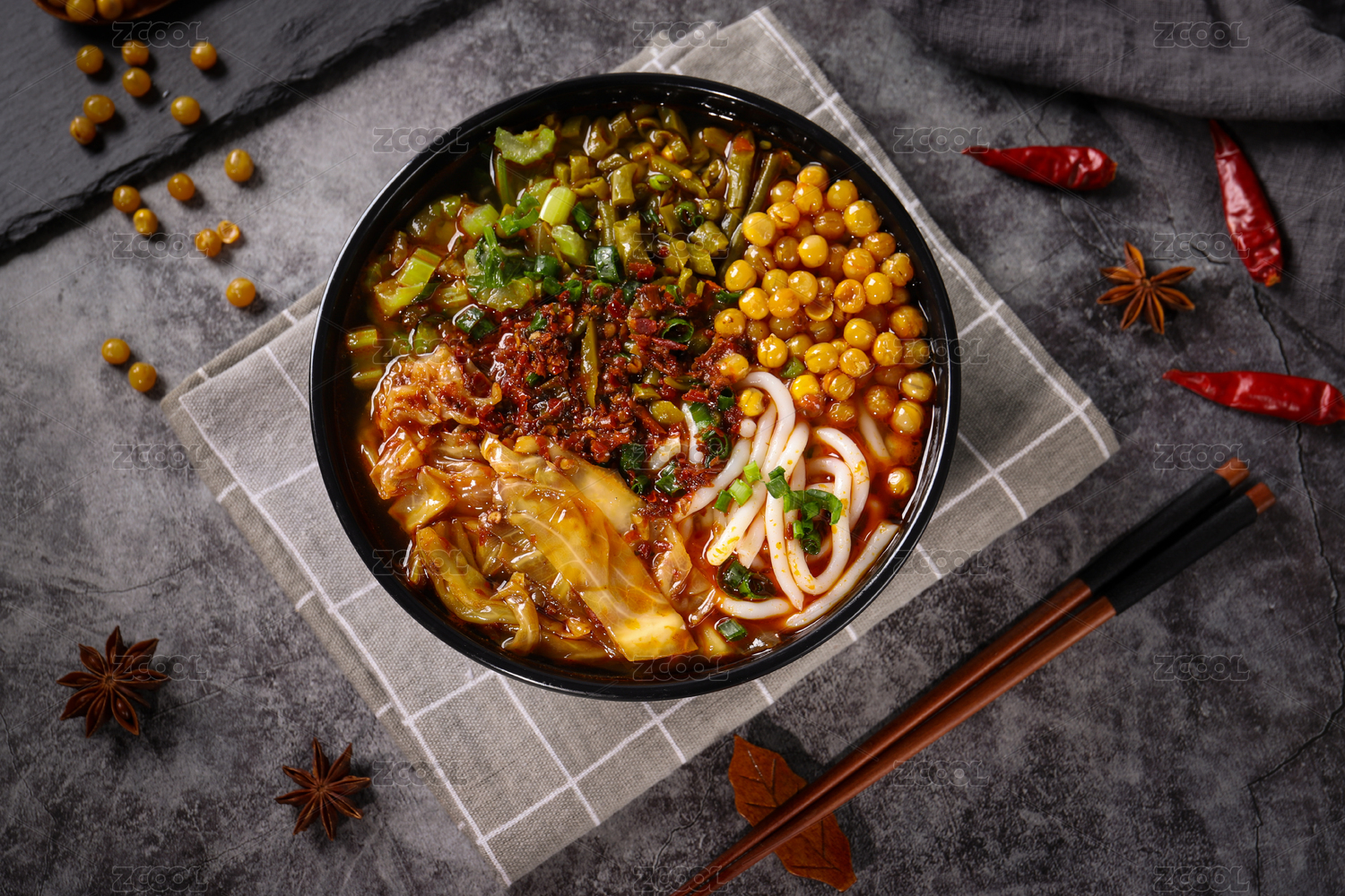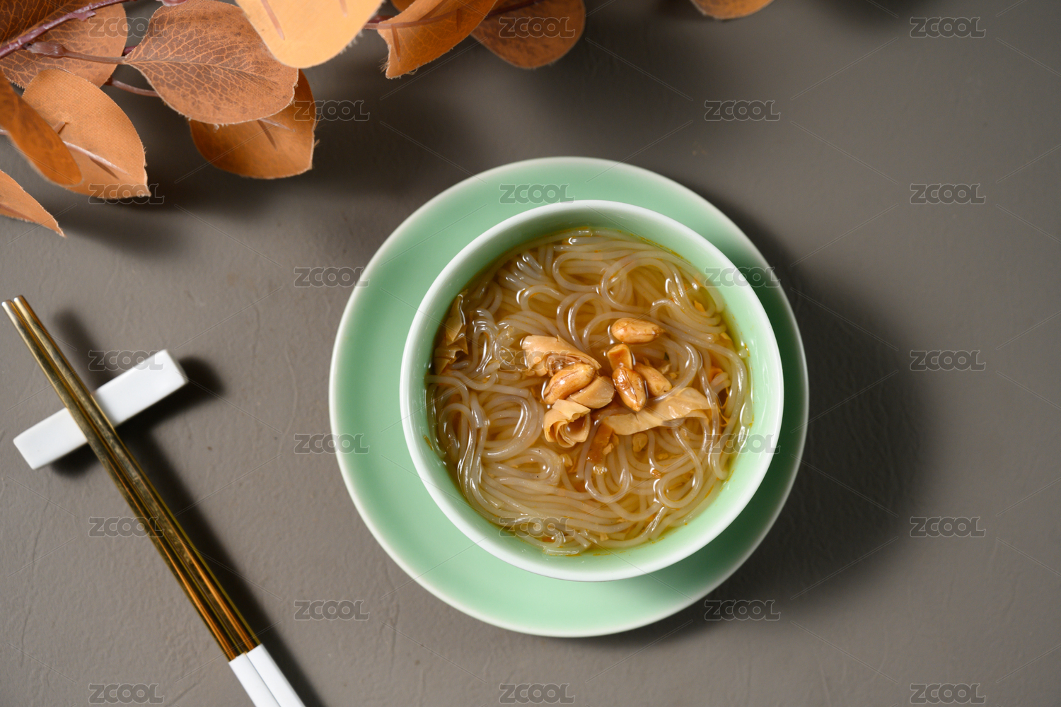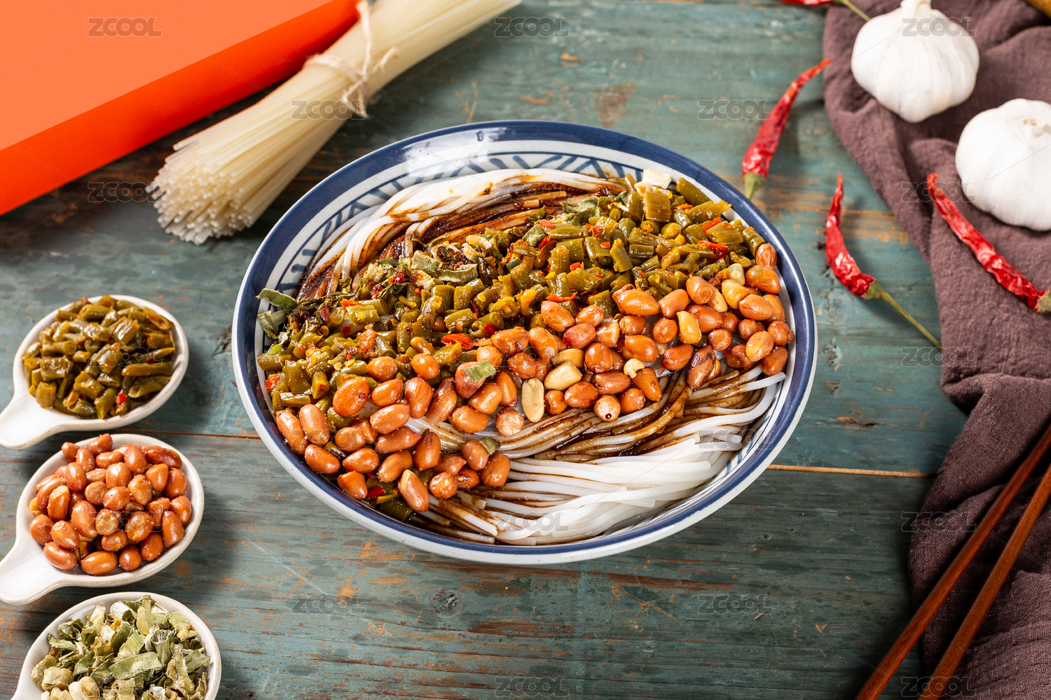 木板背景上滿滿一碗傳統(tǒng)美食酸辣米粉