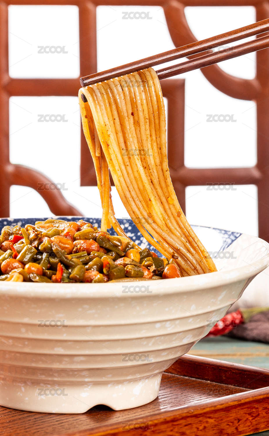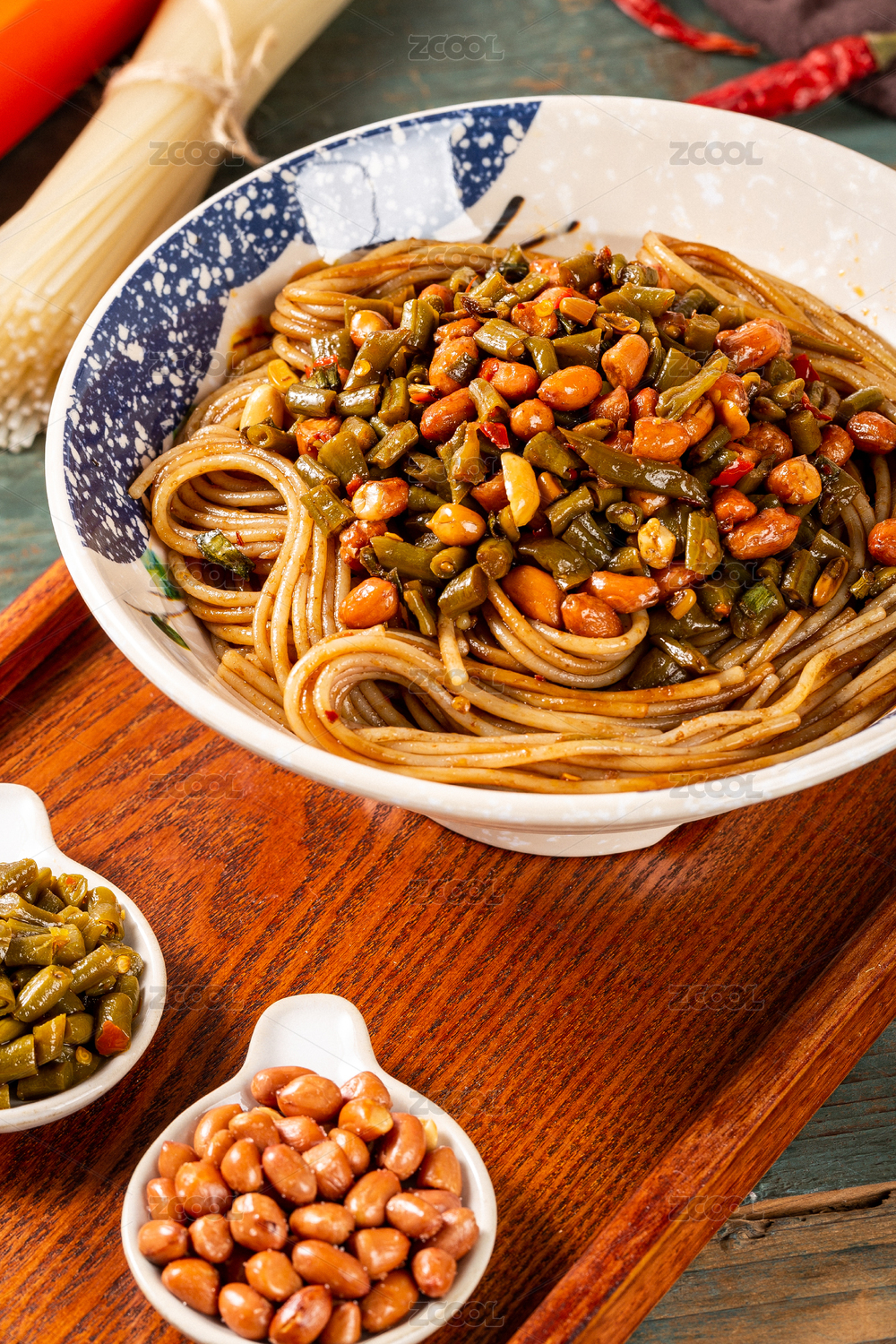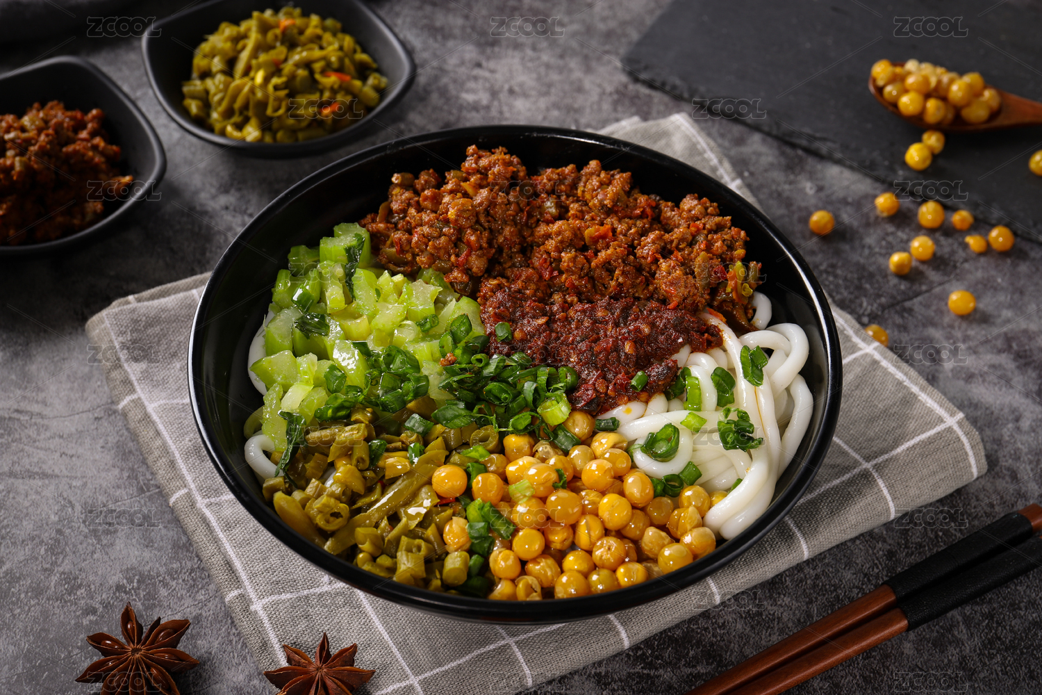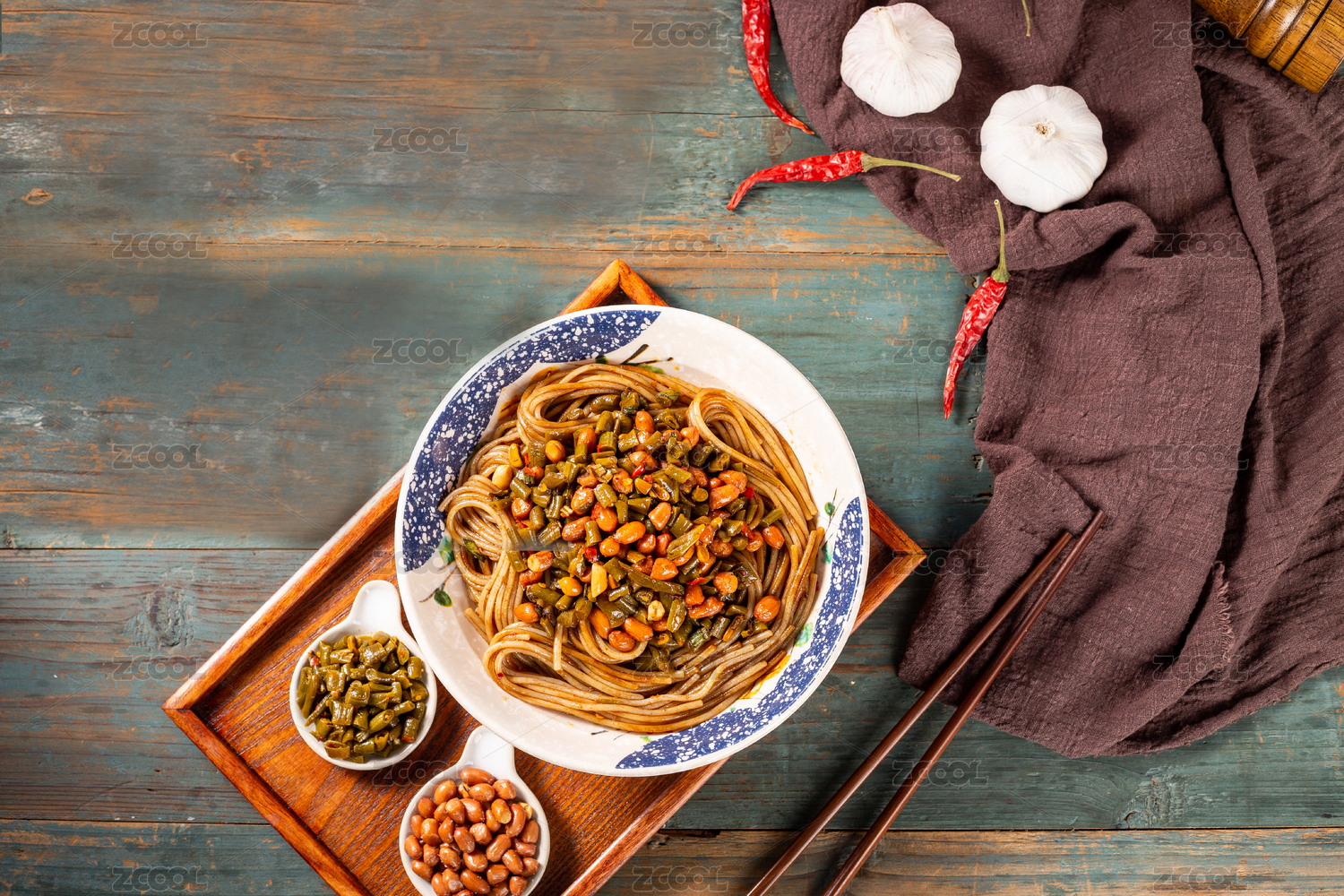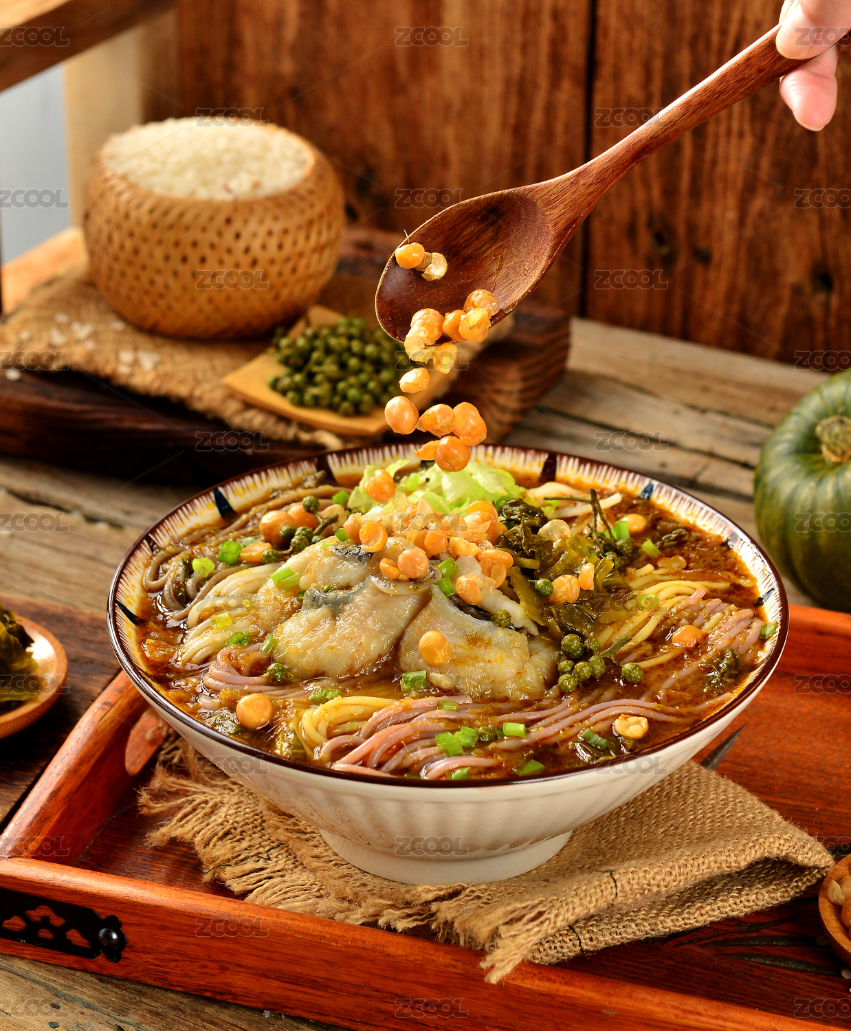 木板背景上滿滿一碗傳統(tǒng)美食酸辣米粉