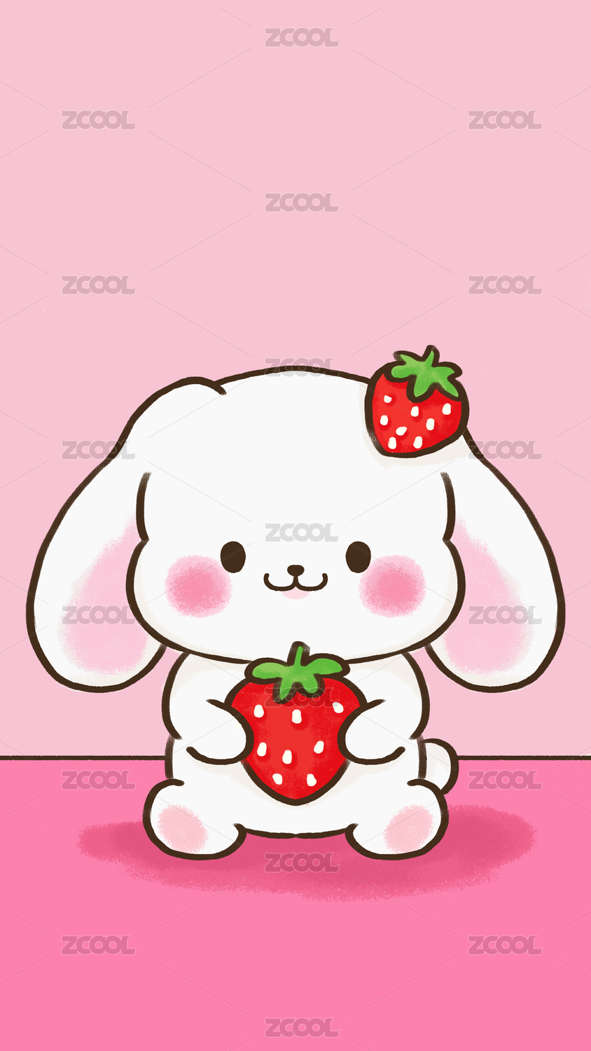 抱著草莓的粉色小兔子卡通插畫