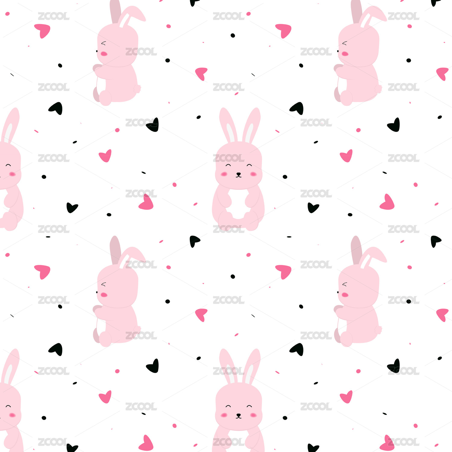 可愛的粉色兔子四方連續(xù)圖案無縫紋理圖