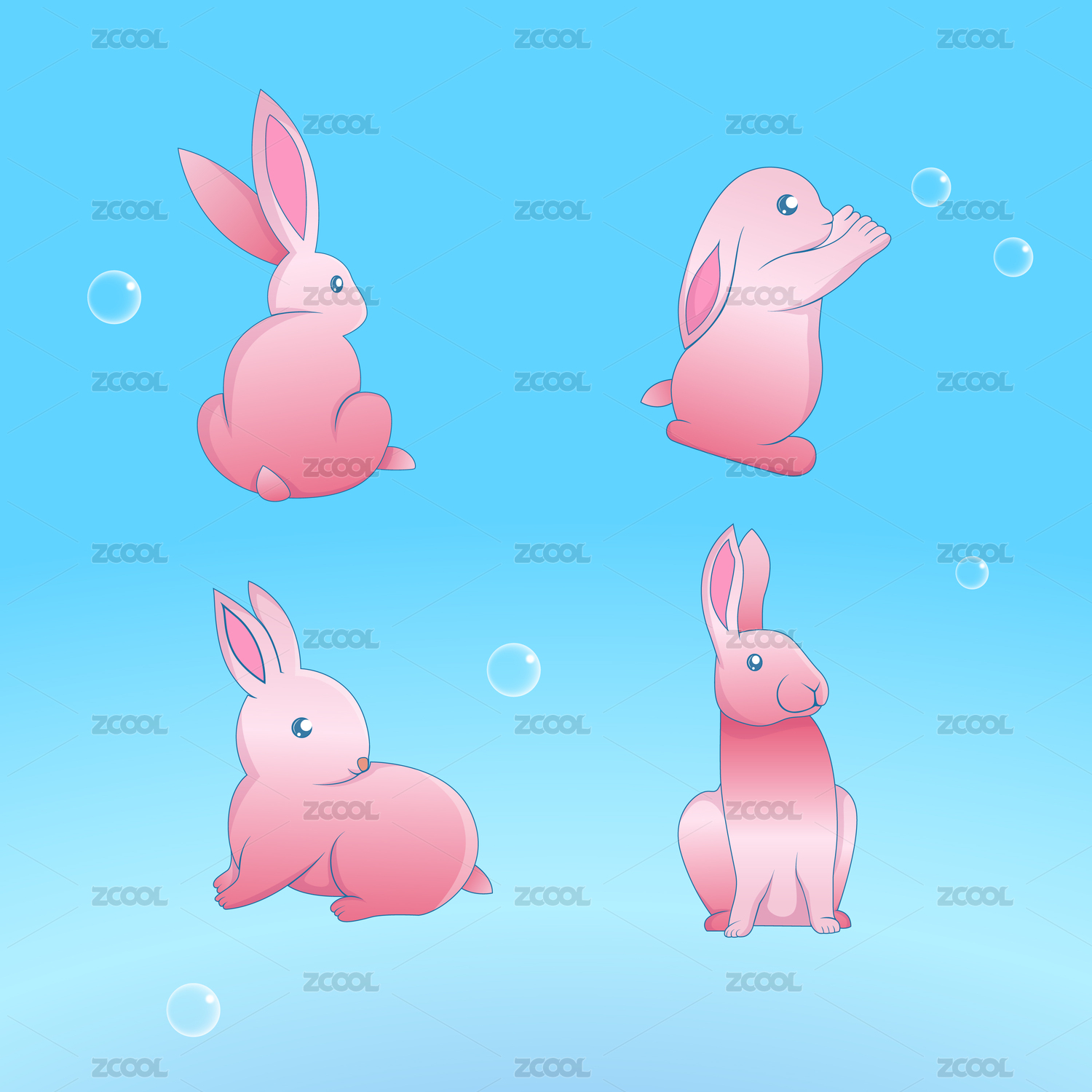 四只形態(tài)各異的可愛粉色兔子