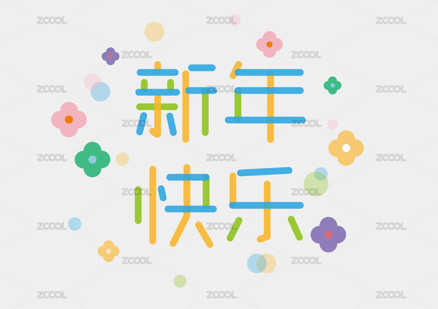 新年快樂(lè)彩色矢量文字