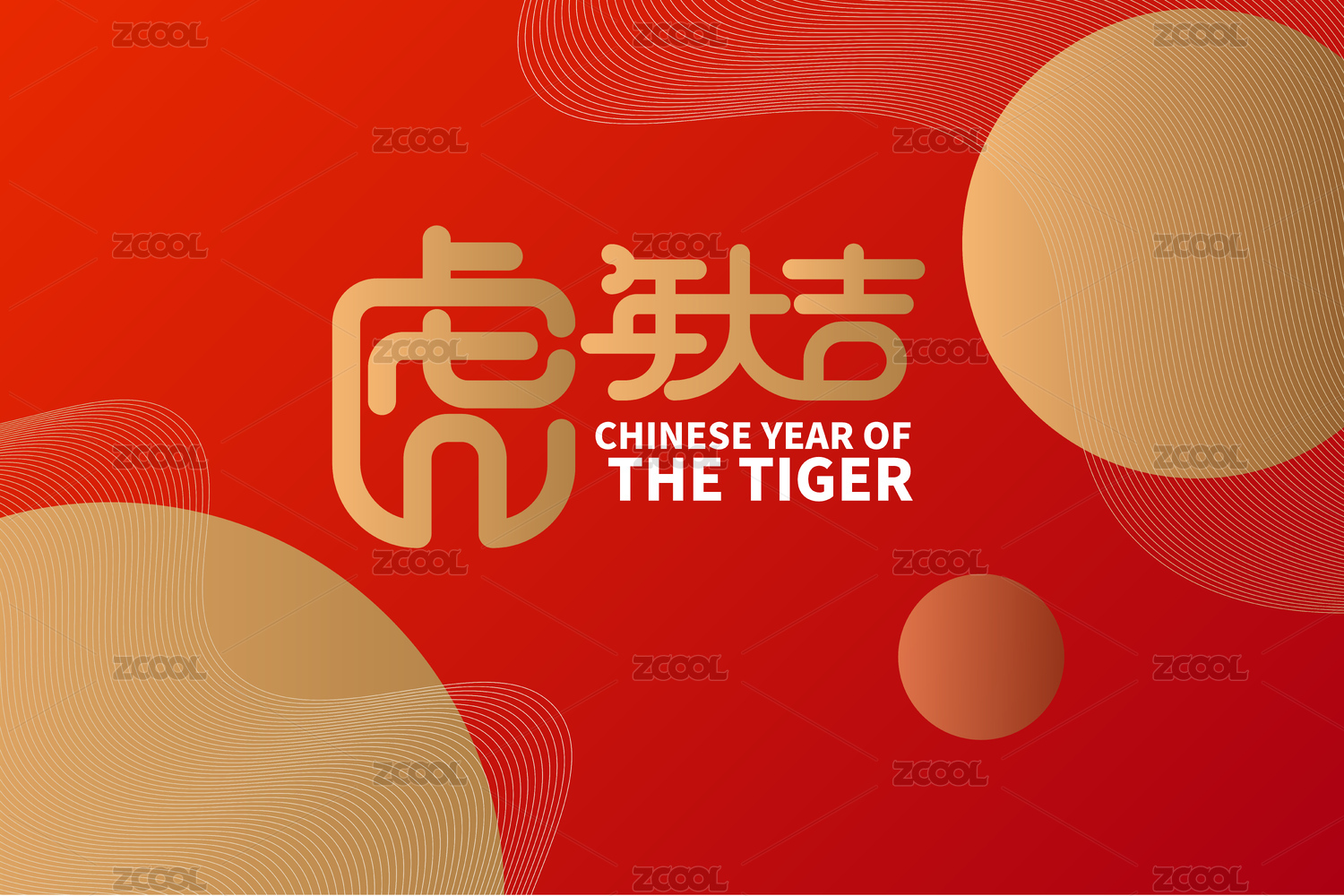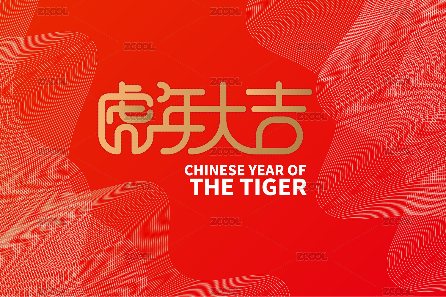 中國(guó)虎年大吉矢量文字海報(bào)插圖