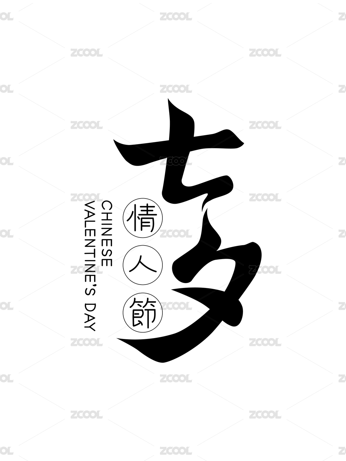 七夕節(jié)七夕書(shū)法字體矢量文字