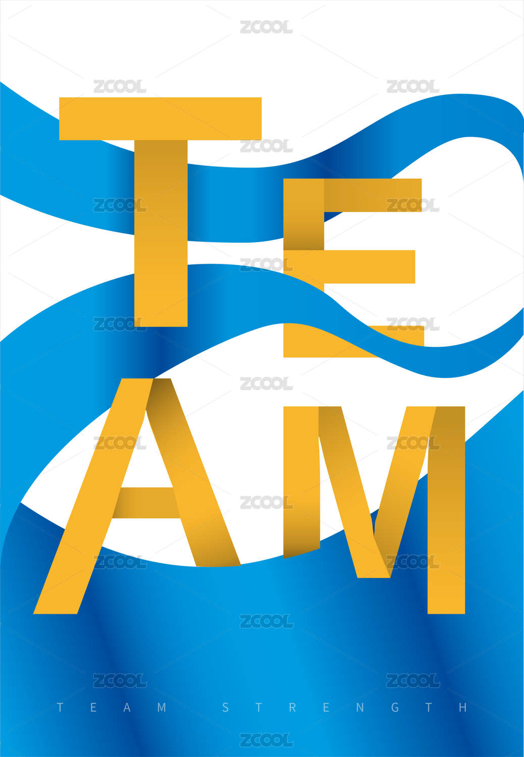 藍(lán)色飄帶環(huán)繞著團(tuán)隊(duì)英文字母字體矢量素材