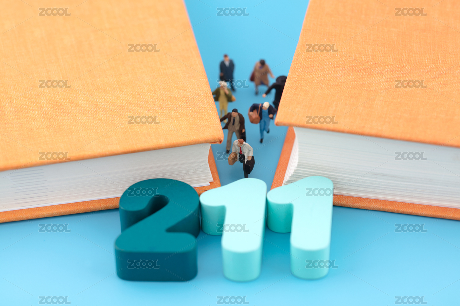 數(shù)字211上看書學(xué)習(xí)的人偶