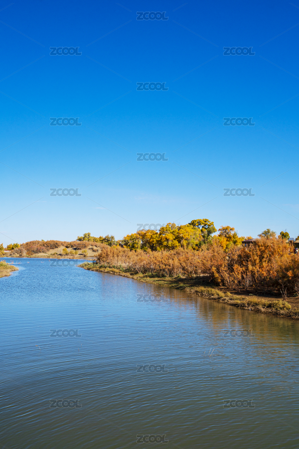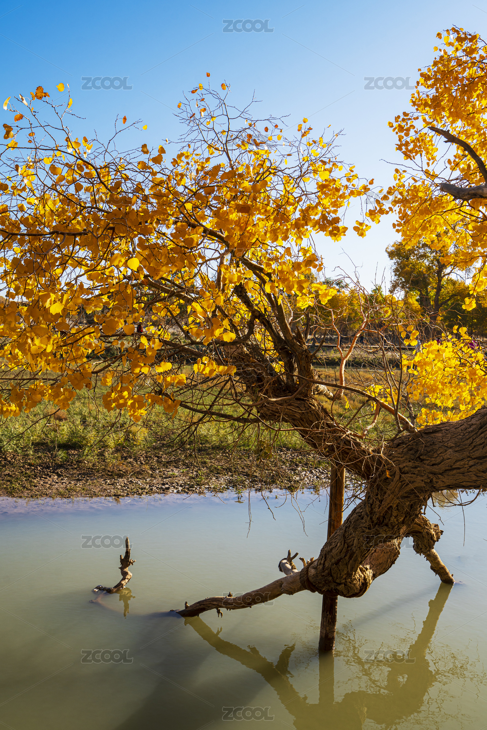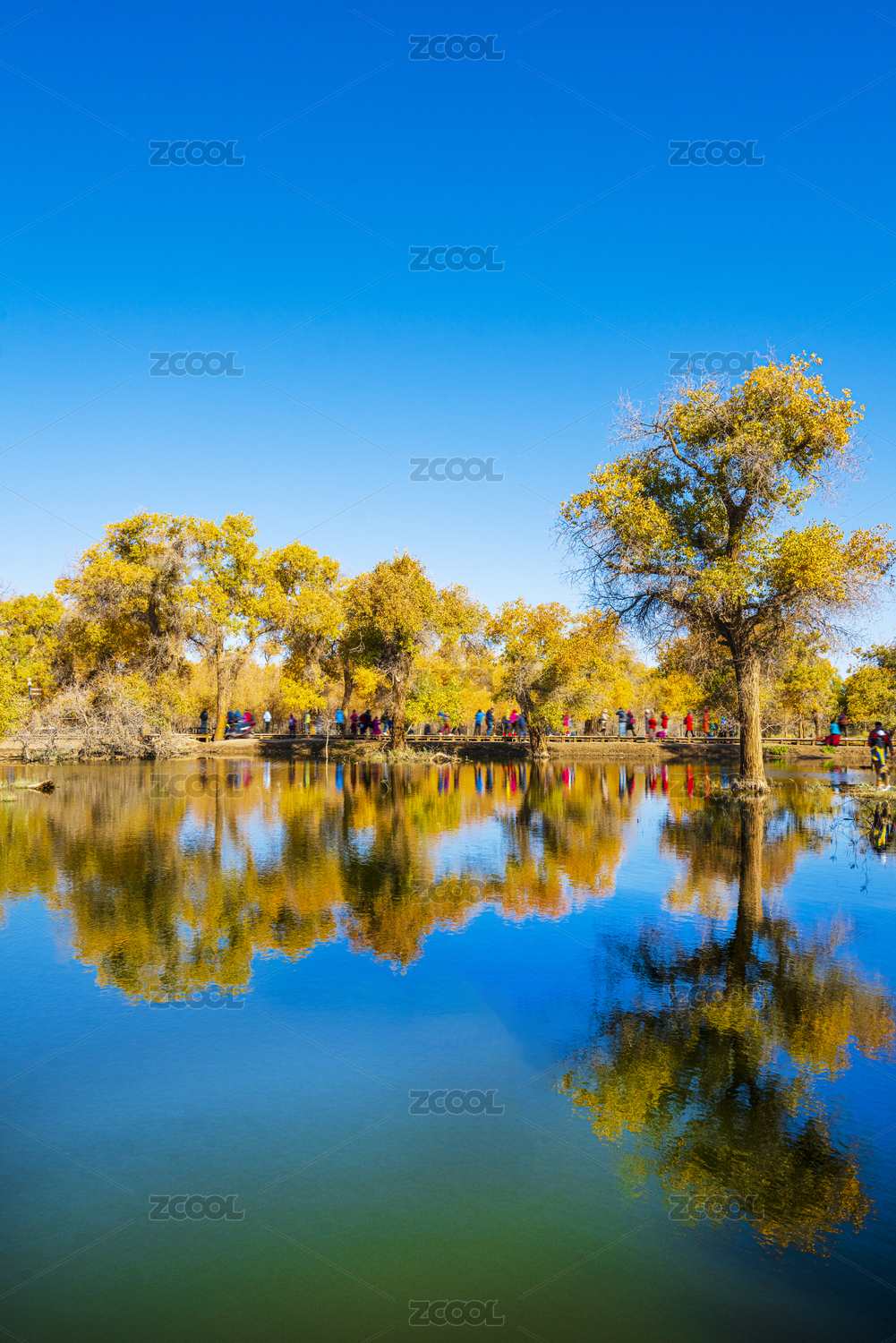 中國(guó)內(nèi)蒙額濟(jì)納旗秋季金黃胡楊林湖邊倒影風(fēng)光
