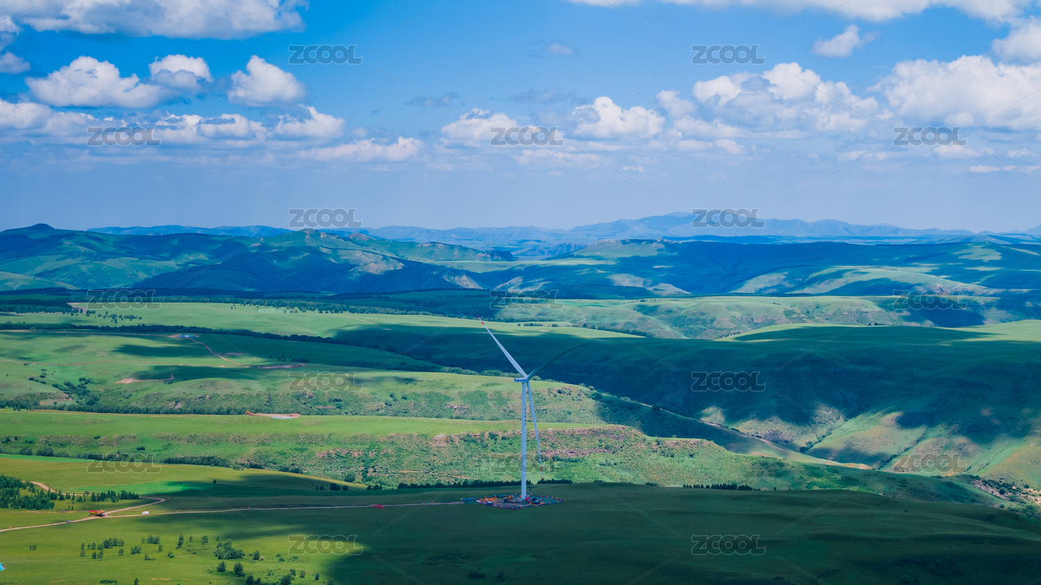 內(nèi)蒙古赤峰市克什克騰旗草原上的風(fēng)力發(fā)電車